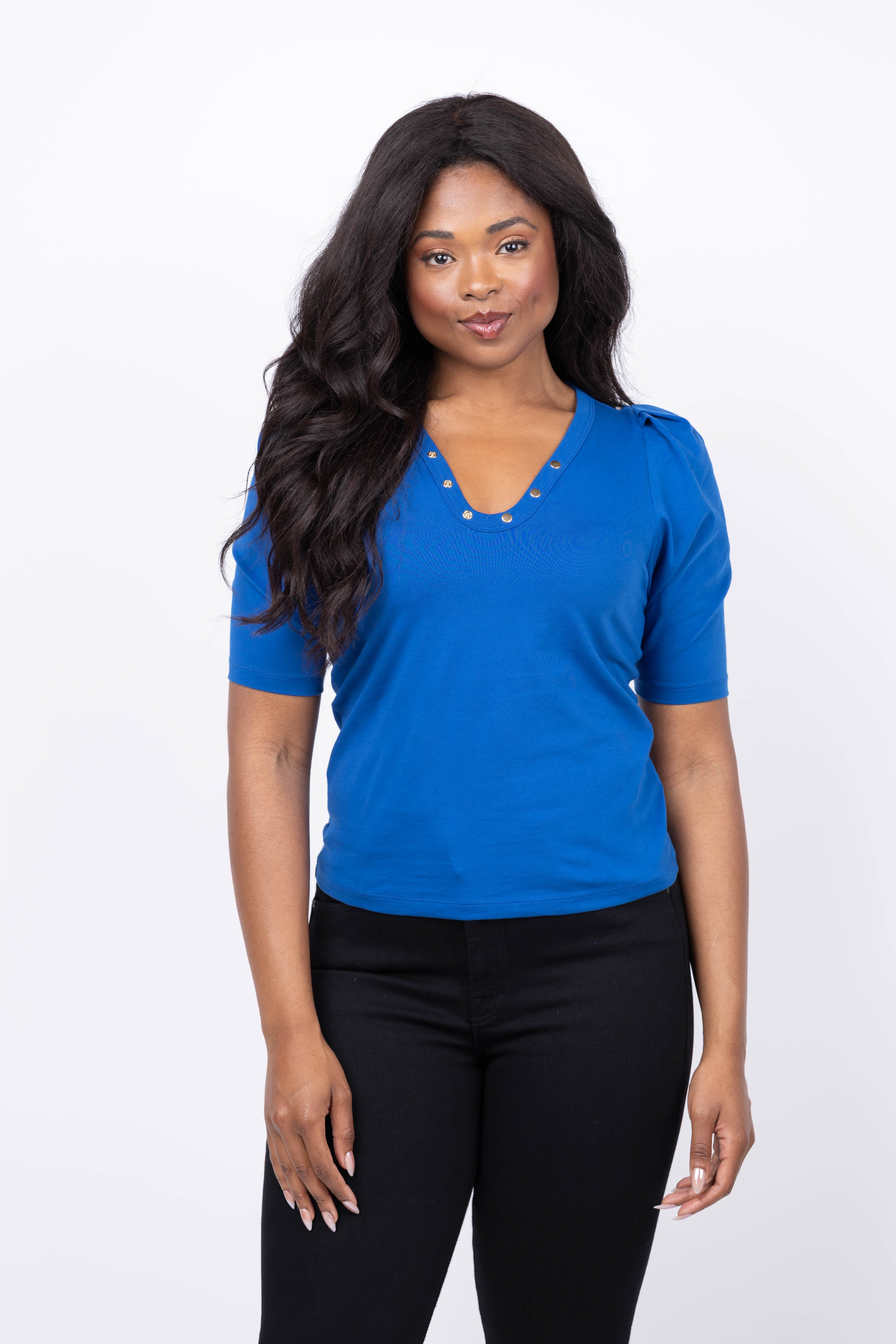 Elevate your everyday style with the NATION LTD Nahal Top in Sapphire. Featuring a flattering U-neck design, this top redefines the basic with a chic, modern cut and vibrant sapphire hue. Perfect for layering or wearing solo, it effortlessly combines comfort and sophistication for a polished, standout look.