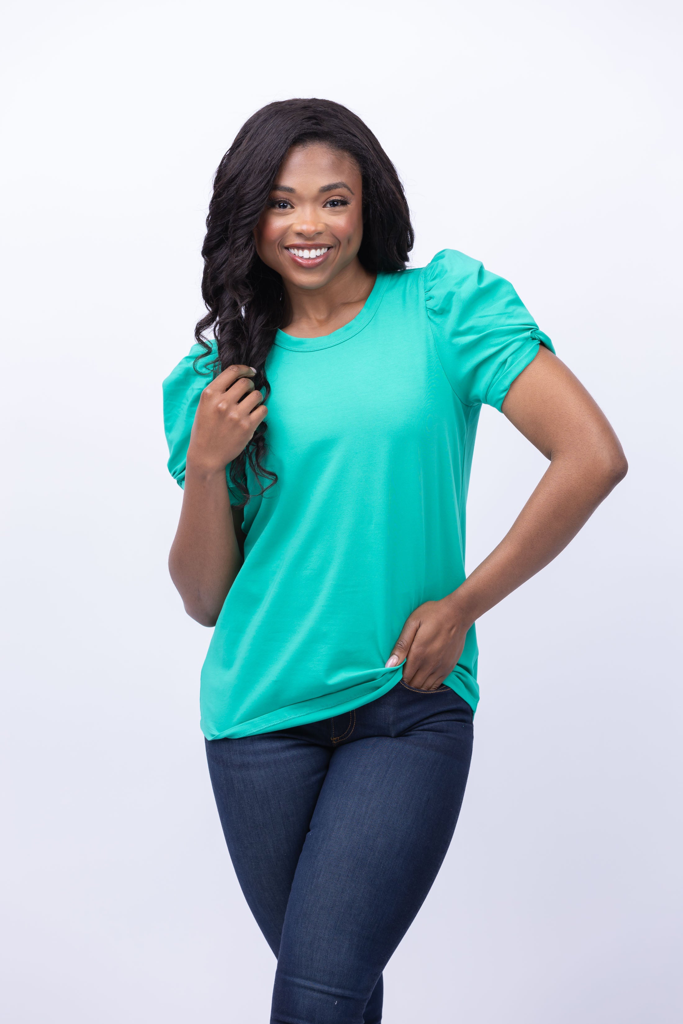 A basic everyday tee, with a twist! This style features a relaxed fit and puff sleeves. Pair this tee with your favorite shorts or denim for an easy day look - plus, it's perfectly packable for travel!