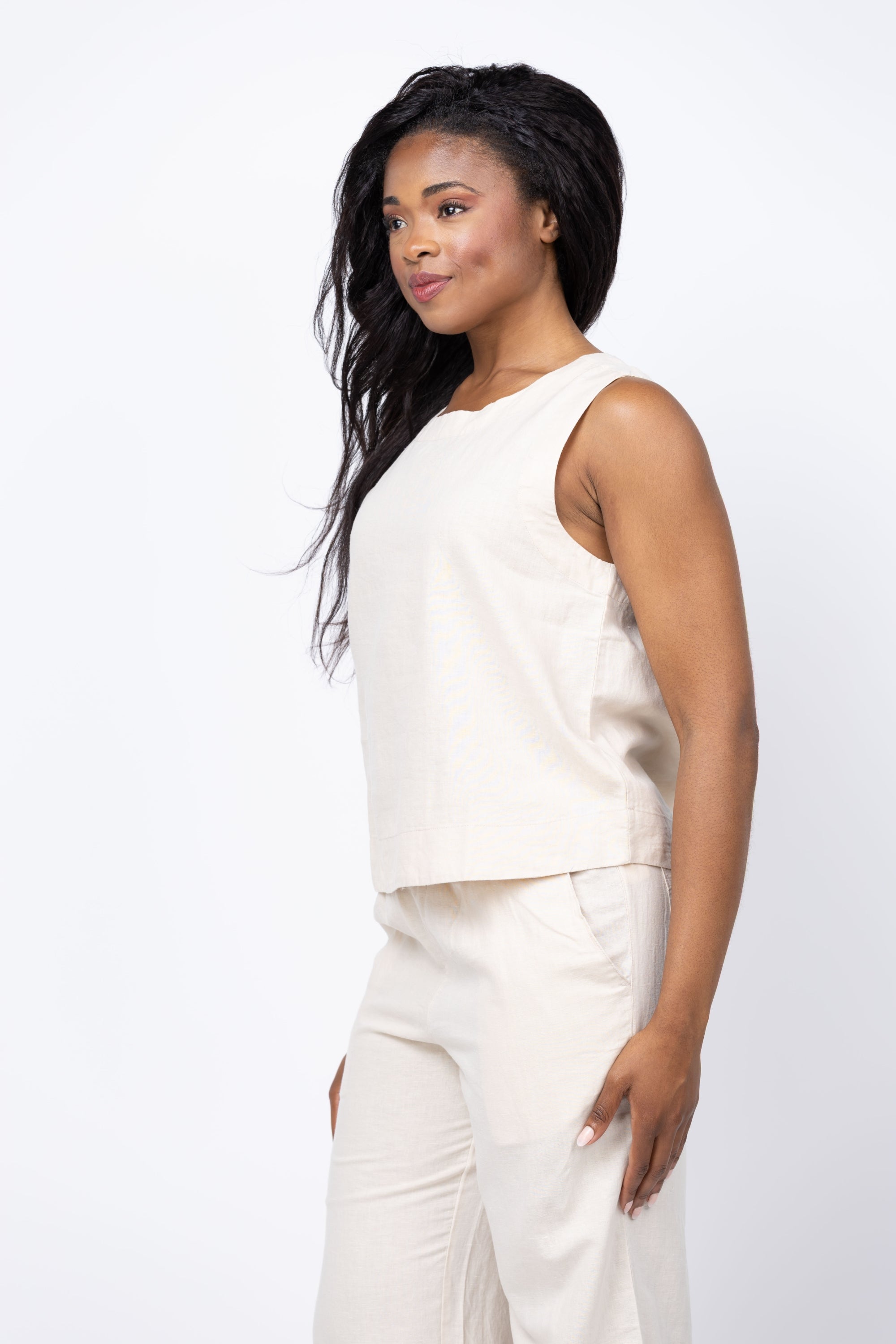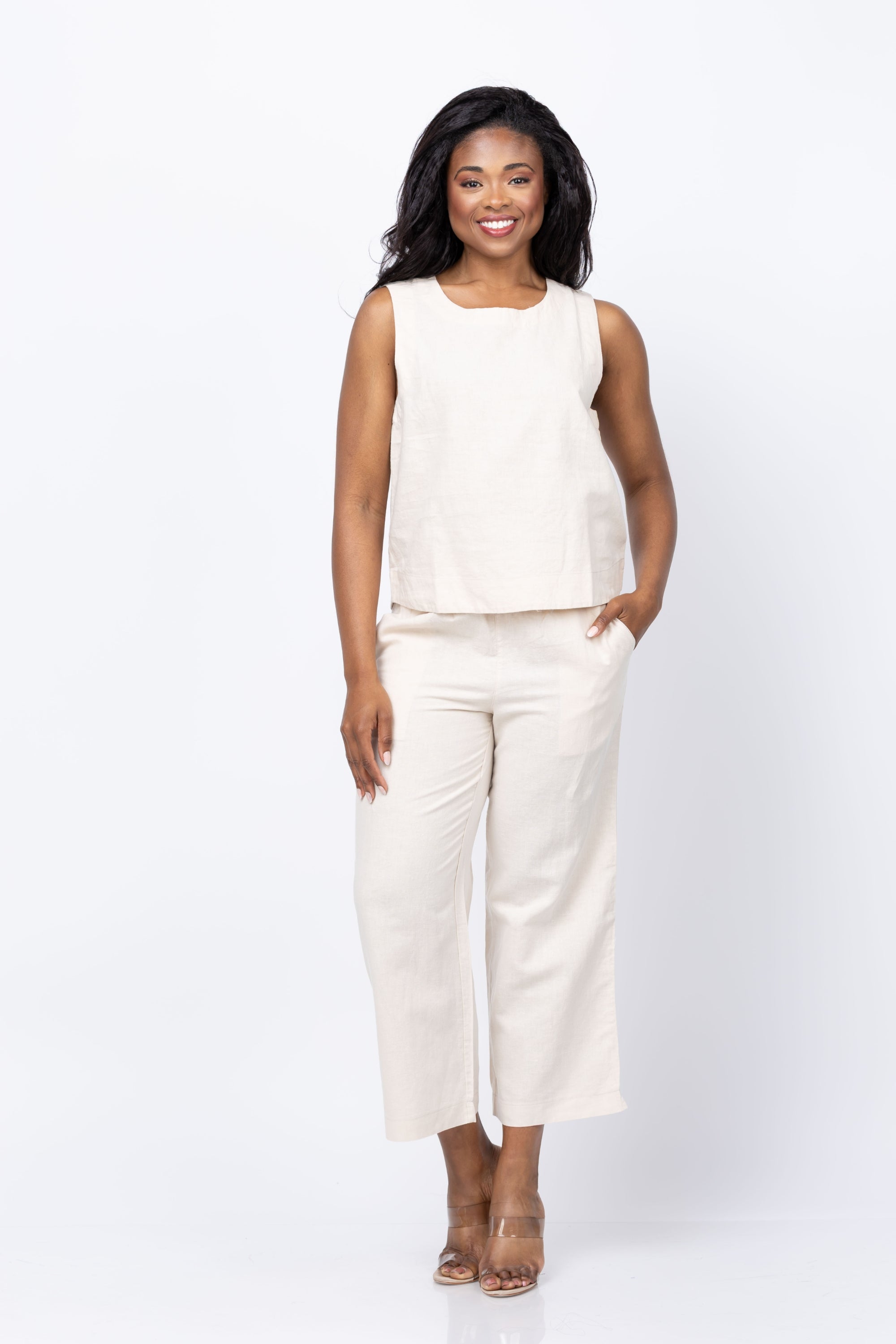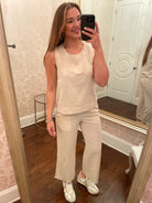 Elevate your summer style with the Dylan Coast Top in Moon Stone. Whether paired with denim shorts or the matching pant, this sleeveless classic offers endless outfit possibilities. Embrace effortless chic and versatility with this must-have piece!