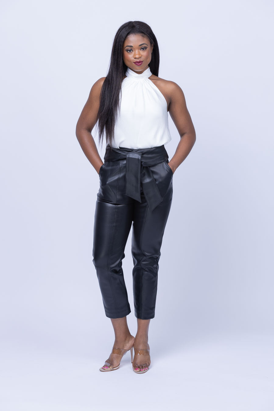 Our Simkhai Thea Top is crafted from fluid satin, for a timelessly chic silhouette. Its high halter neckline pairs perfectly with the mock neck collar to highlight your style in the most elegant way. Look and feel effortlessly luxurious in white!