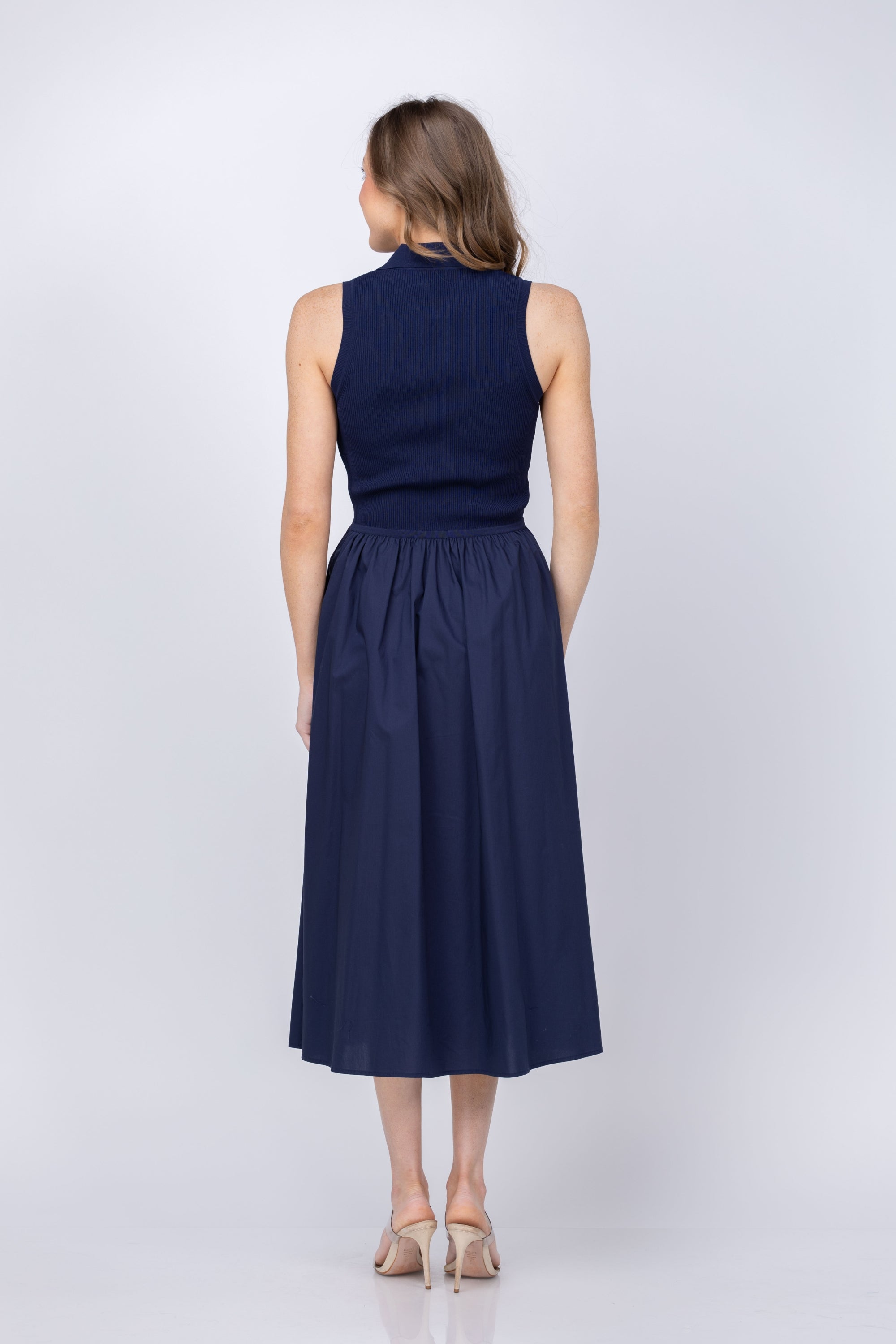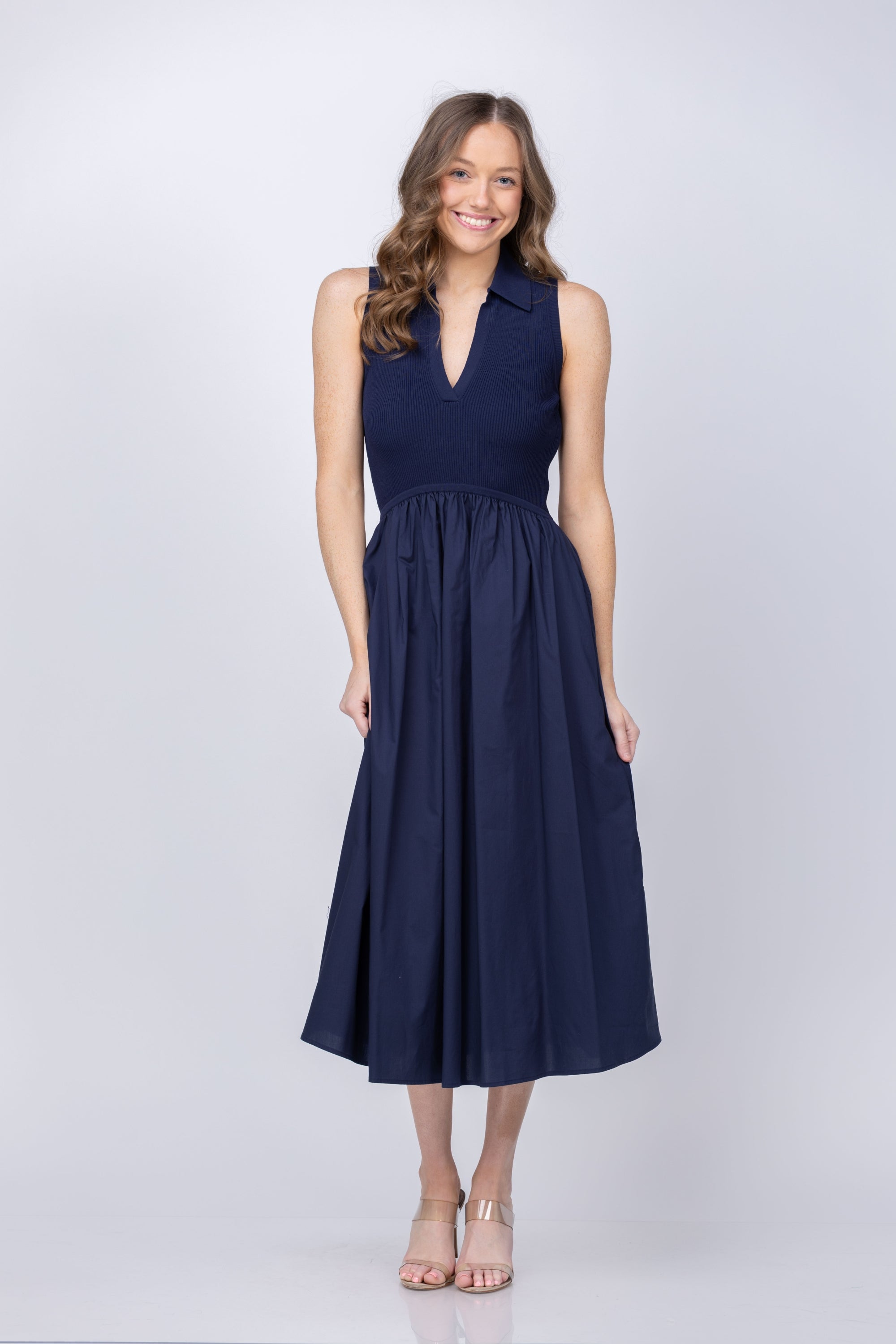 Embrace spring with the Bess Dress, a playful seasonal essential that effortlessly transitions from day to night. This standout piece features a collared v-neck knit bodice paired with a gathered high-low waist and cotton poplin skirt for a polished, chic silhouette. The thoughtful design balances comfort with sophistication, making it perfect for warmer weather ahead. Pair with strappy sandals for an elevated, off-duty aesthetic that feels both put-together and relaxed.