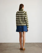 The Tanya Taylor Brinkley Top in Army/Chalk Wide Stripe combines organic cotton comfort with polished style. This relaxed pullover features long sleeves and a cozy ribbed turtleneck, offering the softness of a sweater with a refined edge. Its rugby stripe design adds a playful twist to any outfit. Perfect for layering, pair it with the Short Hudie Skirt for a chic daytime look that effortlessly carries you through cooler days. Elevate your casual wardrobe with the Brinkley Top’s blend of comfort and sophistication.
