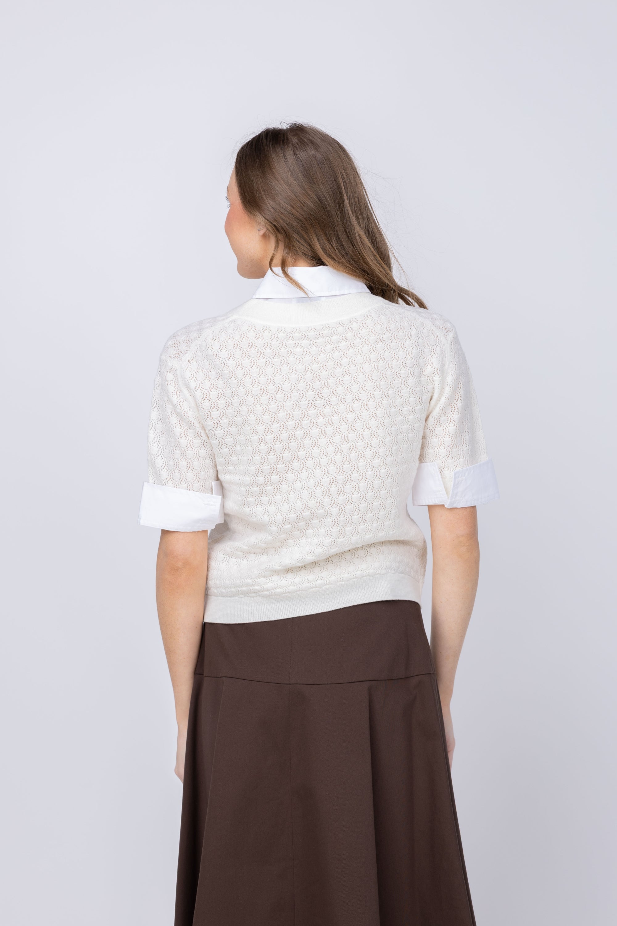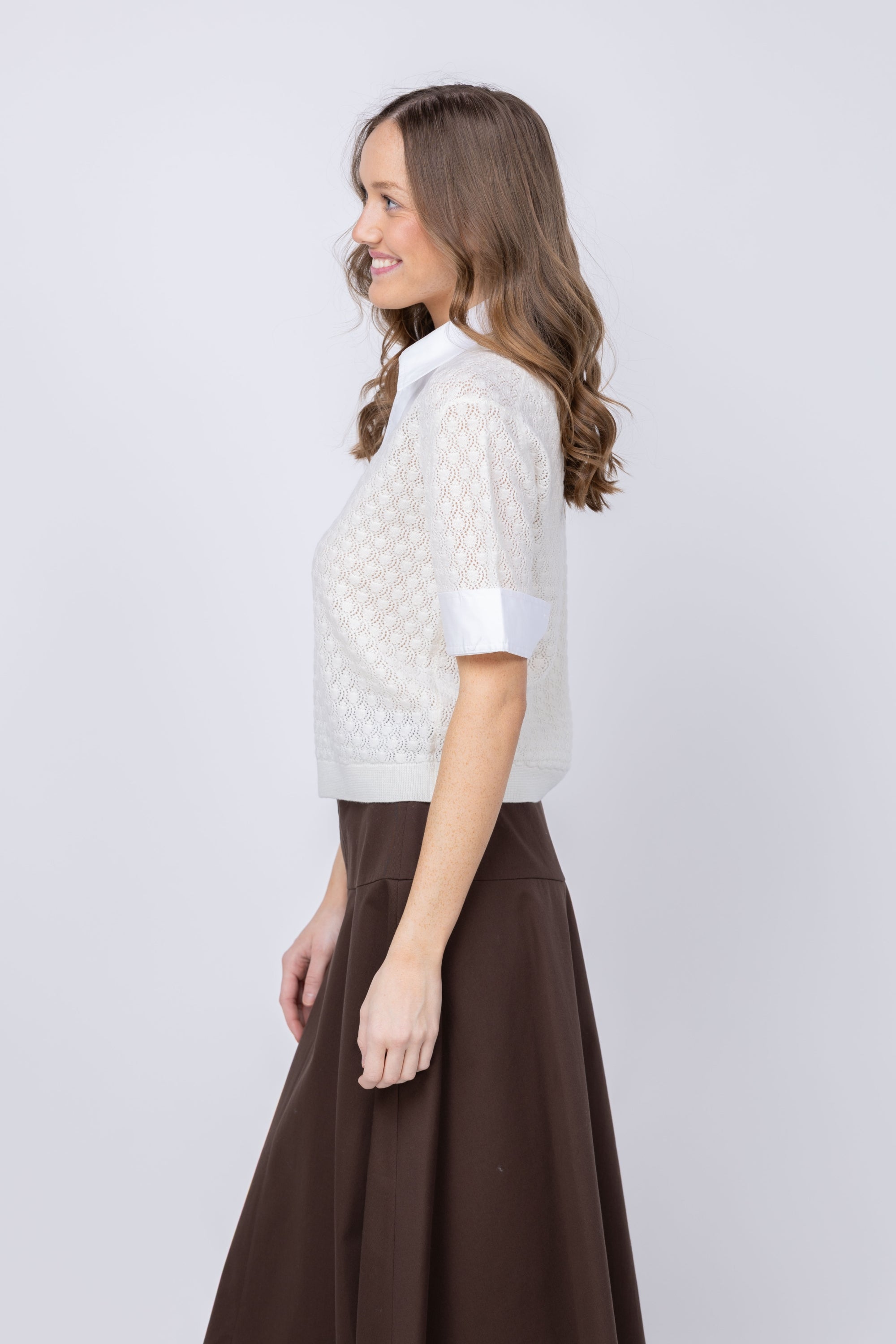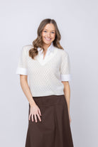 Tanya Taylor Esme Pointelle Knit Top in Cream