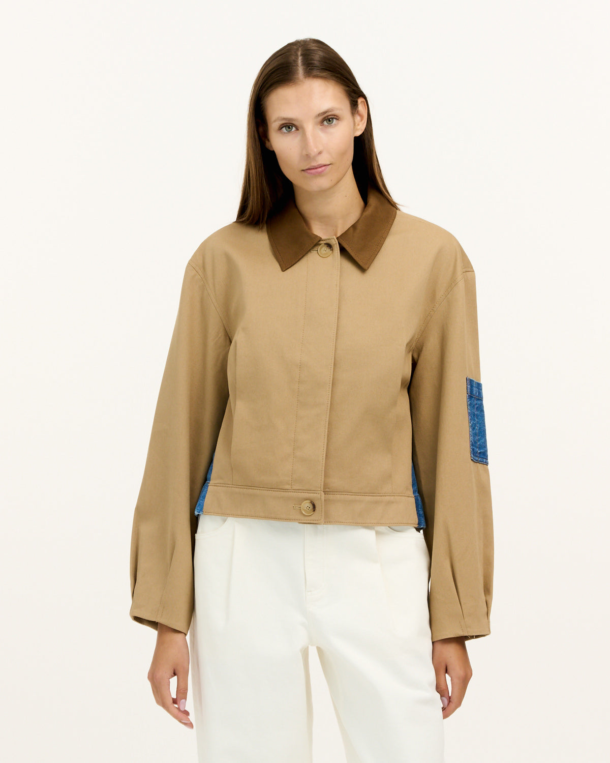 - Body: 100% Cotton, Denim: 80% Cotton, 20% Recycled Cotton, Collar: 100% Cotton, Lining: 100% Cotton