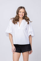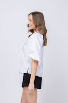 Crafted from crisp cotton poplin, the Marine Top brings effortless elegance to your spring rotation. The 3/4 balloon sleeves create a playful contrast against the tailored straight-cut silhouette, delivering casual sophistication in one versatile piece. Pair it with denim and a strappy kitten heel for a polished look that transitions seamlessly from day to night.