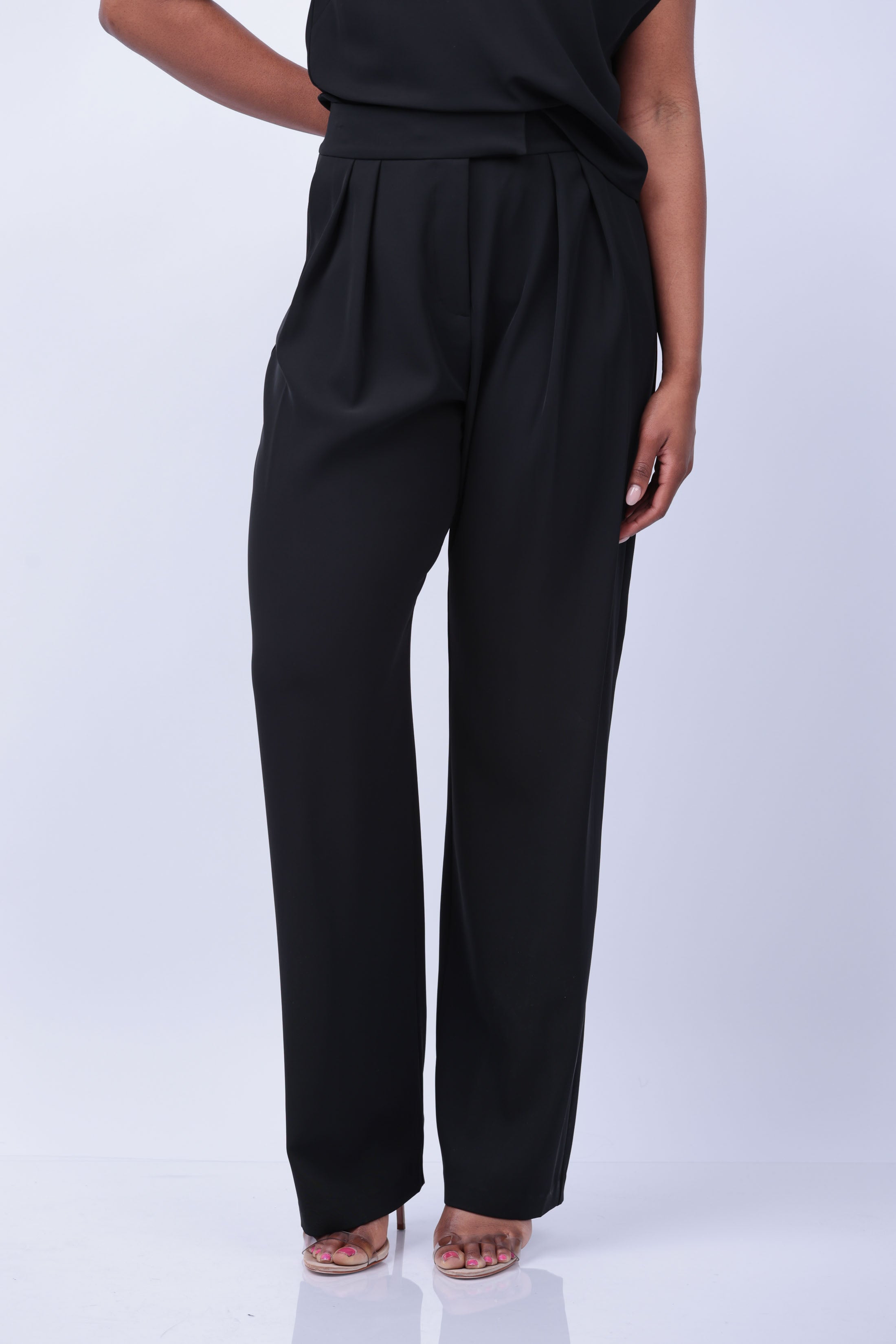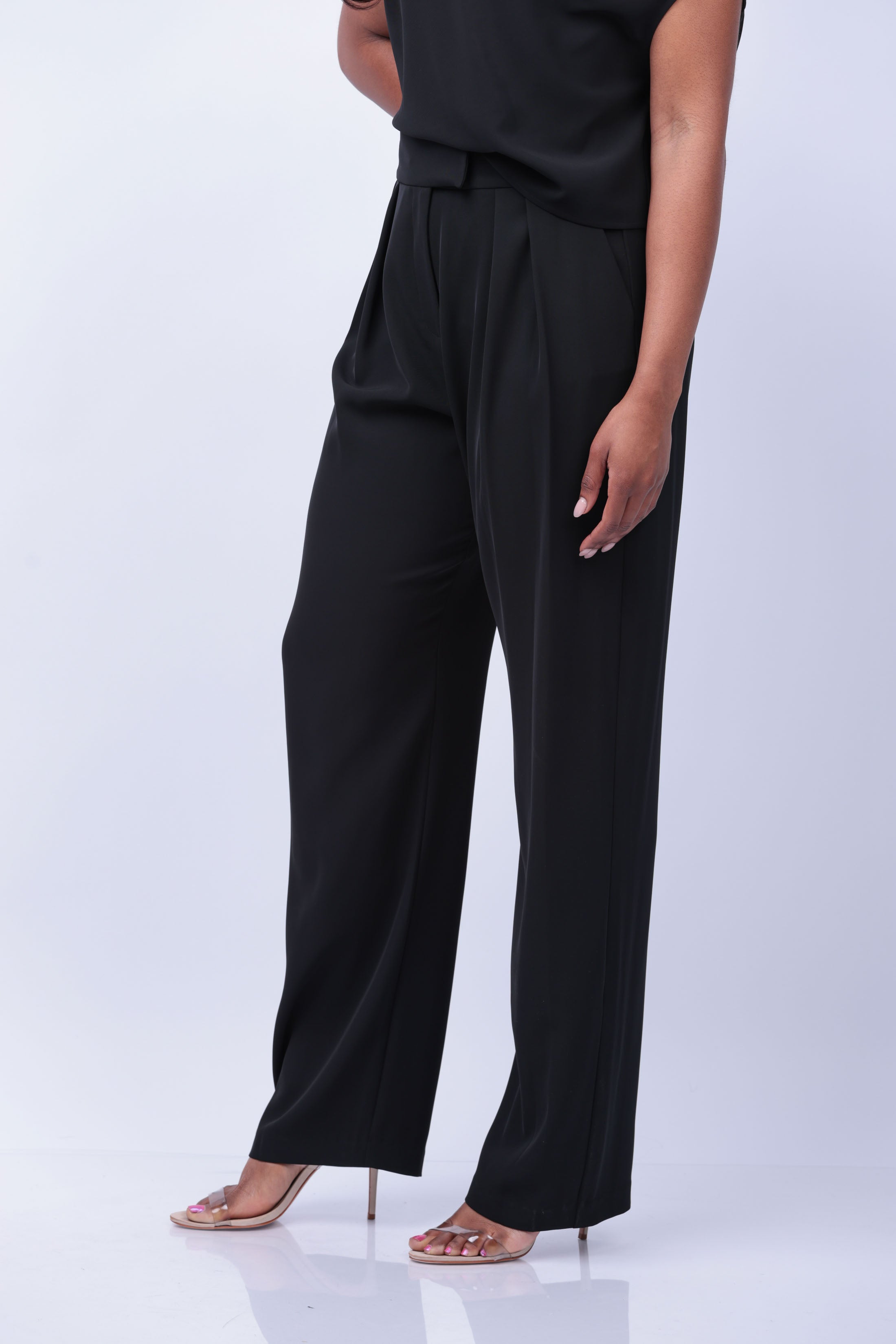 Elevate your wardrobe with The Sei Double Pleated Trouser in Black. The tailored baggy fit provides a relaxed yet polished look, while the pleated-front design adds a touch of sophistication. With a defined banded waist and convenient side slit pockets, these trousers are both functional and stylish.