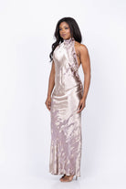 THE SEI Halter Bias Gown in Dusty Rose