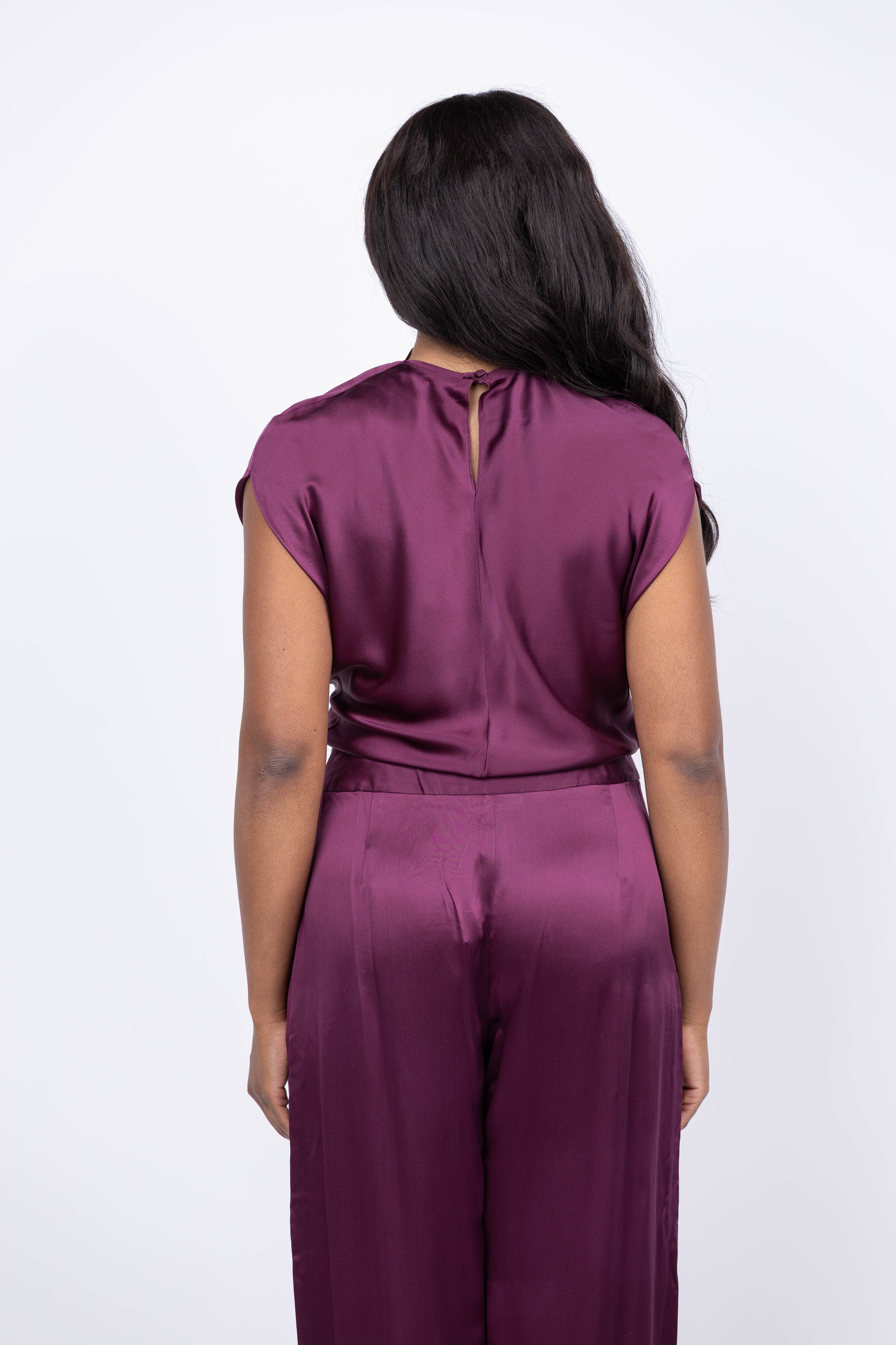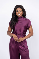 Elevate your wardrobe with THE SEI High Neck Drape Top in Merlot—a sophisticated piece that combines timeless elegance with modern ease. The luxurious satin fabric drapes beautifully against your skin, creating a flattering silhouette that works for both professional settings and evening occasions. A single button closure at the neckline adds refined detail while keeping dressing effortless. The rich ruby hue brings warmth and dimension to any outfit, making this versatile top an essential addition to your collection.