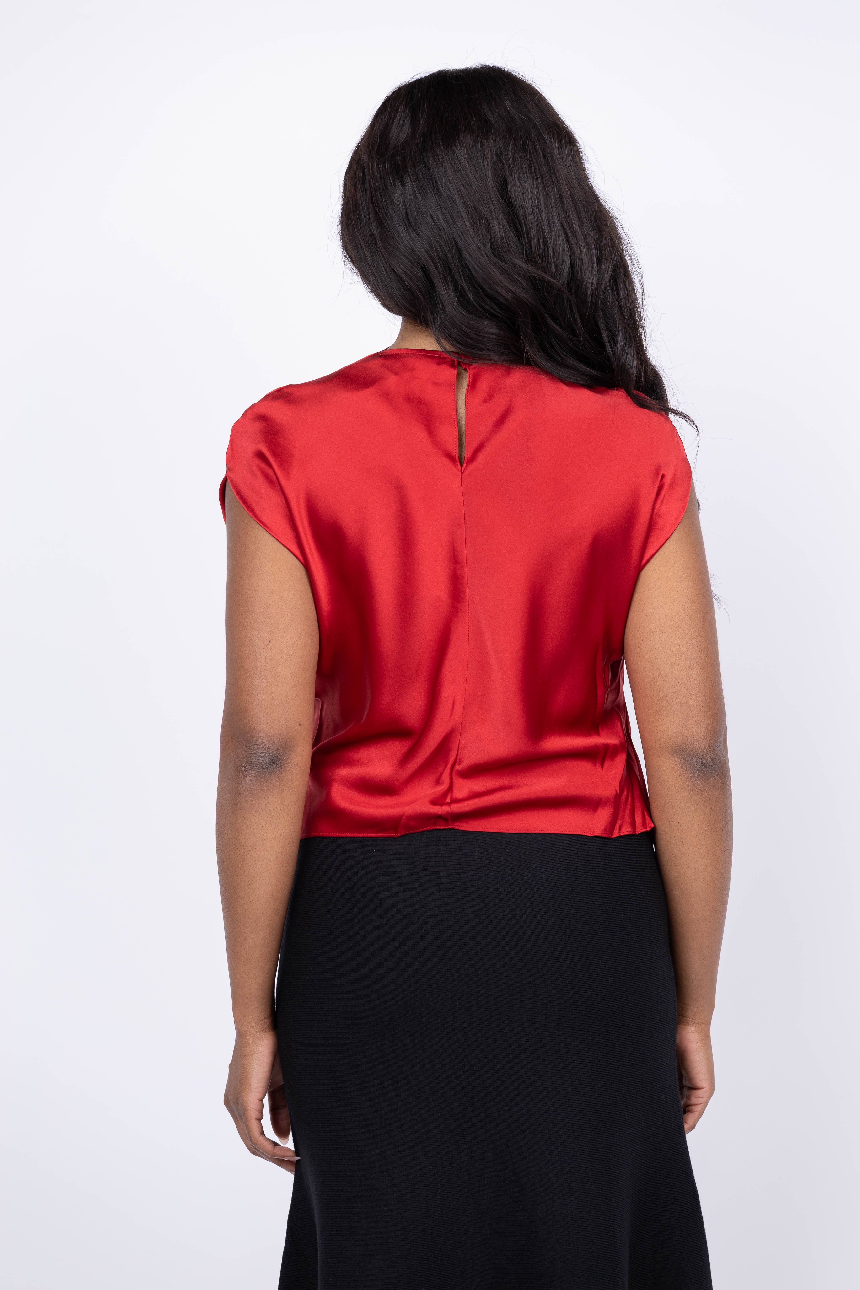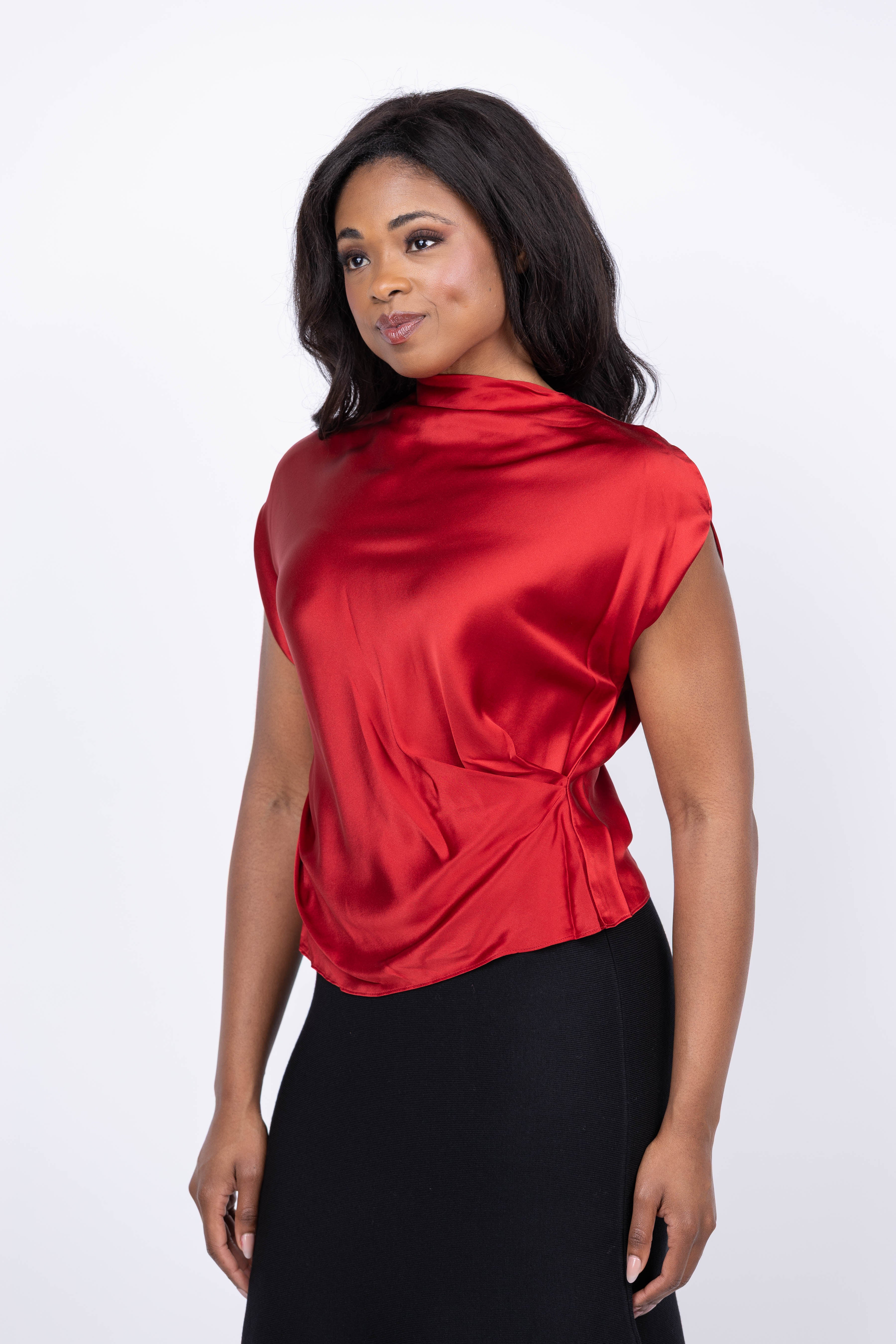 THE SEI High Neck Drape Top in Ruby