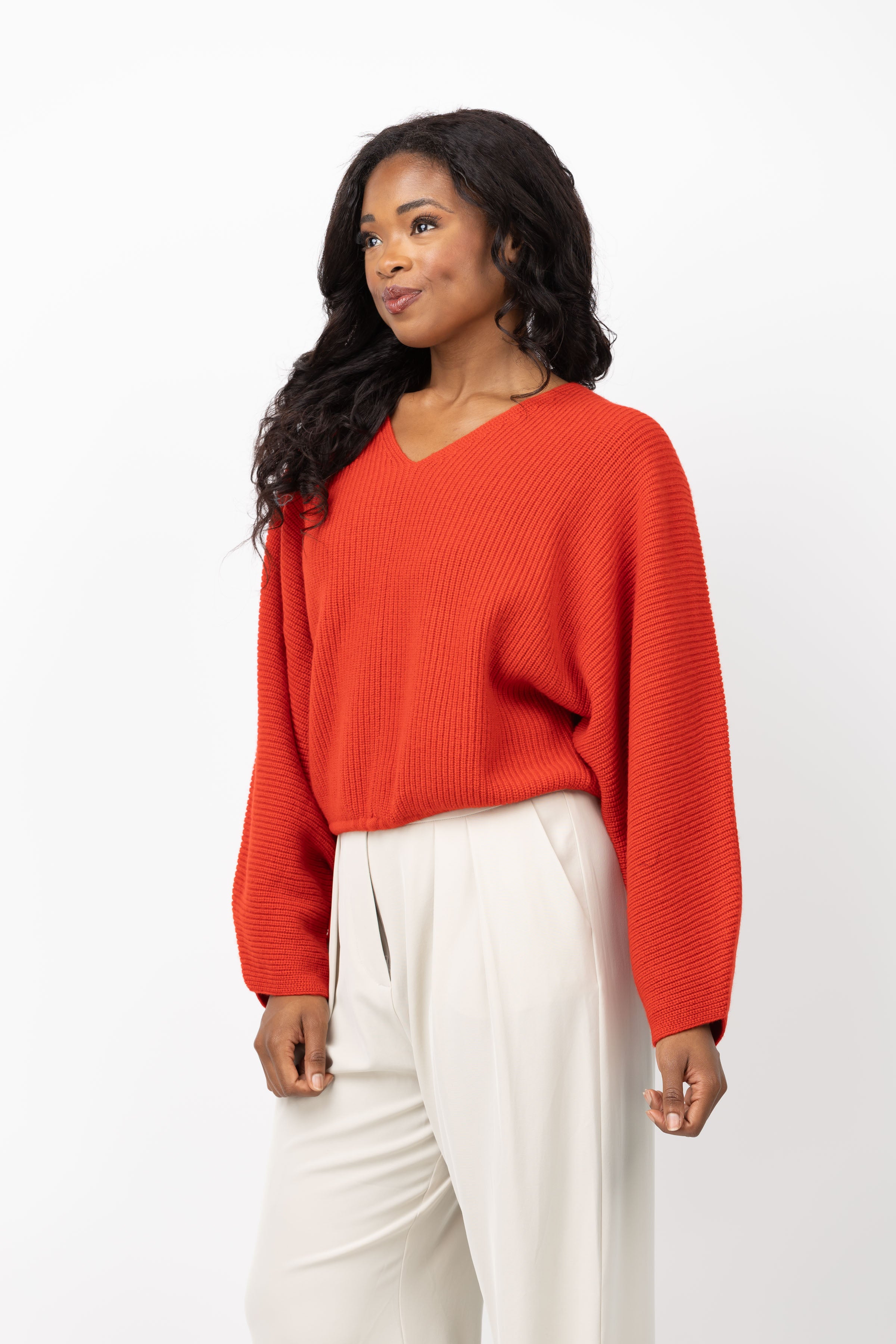 Wrap yourself in luxury with The Sei Oversized V-Neck Sweater in Crimson. Made with a midweight ribbed knit fabric, this pullover sweater boasts a flattering v-neckline and effortless pull-on styling for ultimate comfort. Embrace a chic and sophisticated look with this luxe piece.
