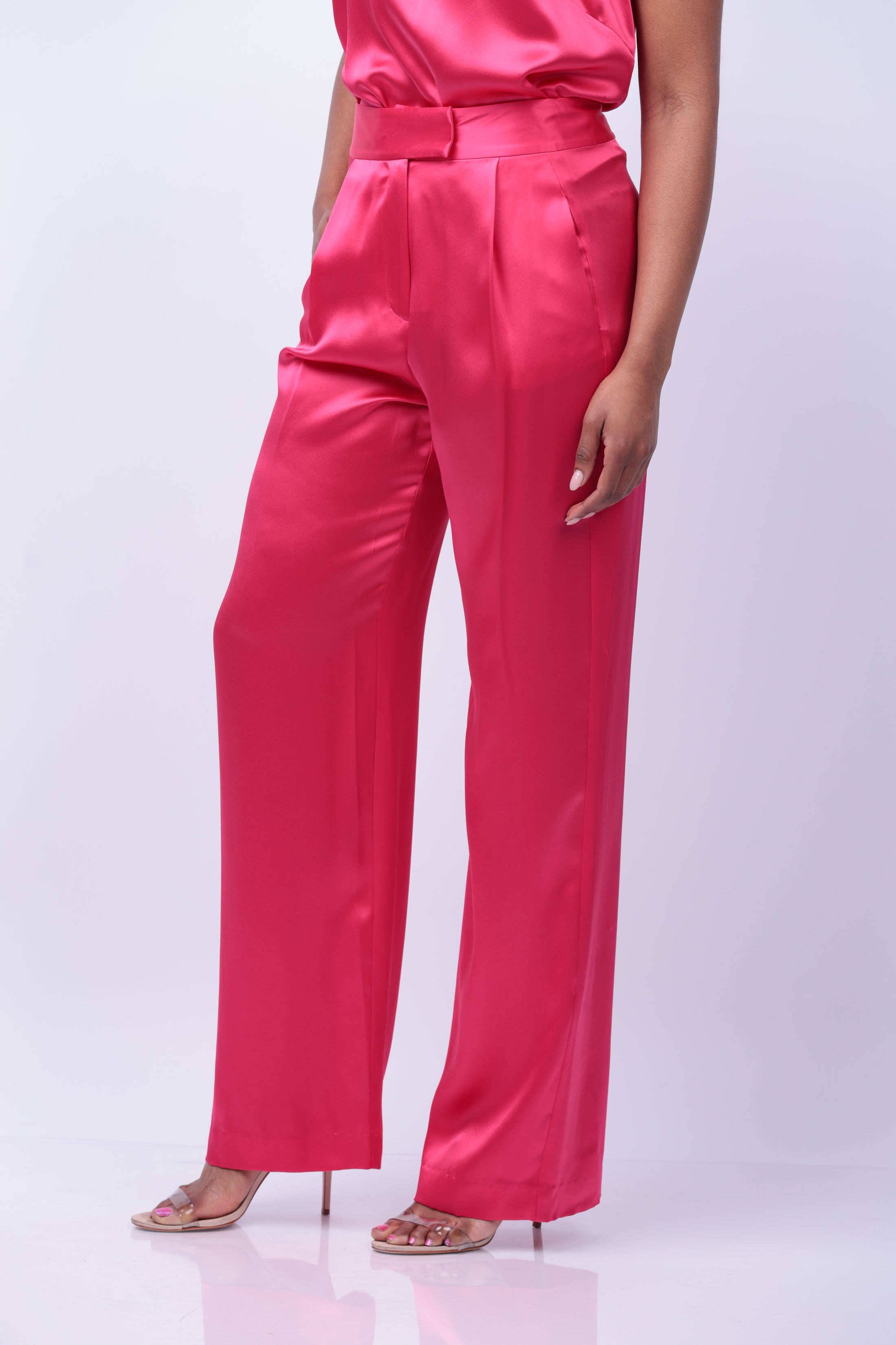 Experience luxury and comfort with The Sei Wide Leg Silk Pants in Peony. Made from high-quality silk, these fluid trousers feature a glossy finish and a pleated wide-leg silhouette. The banded waist and waist seam pockets add functionality to these stylish pants. Elevate your wardrobe with these must-have silk pants!