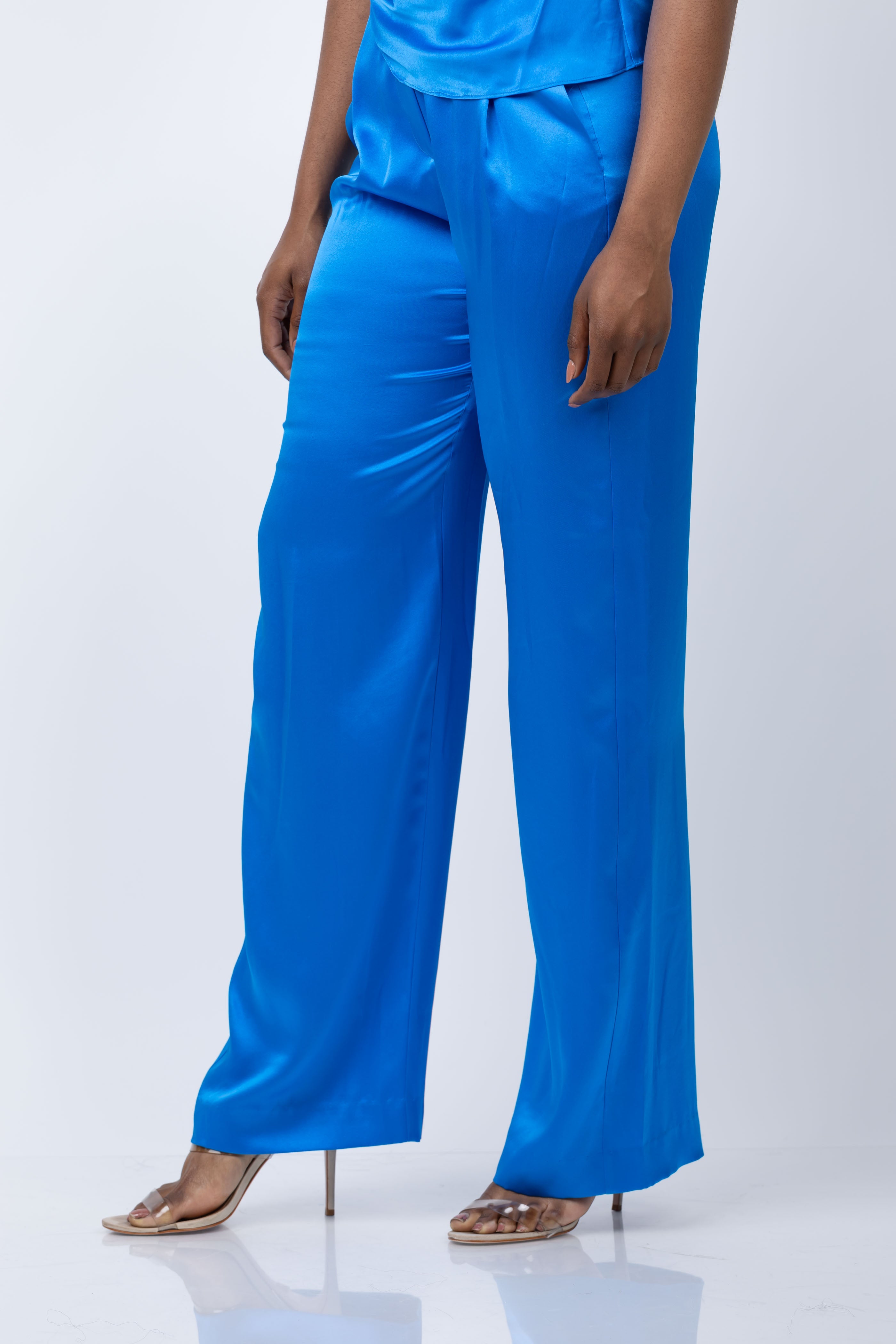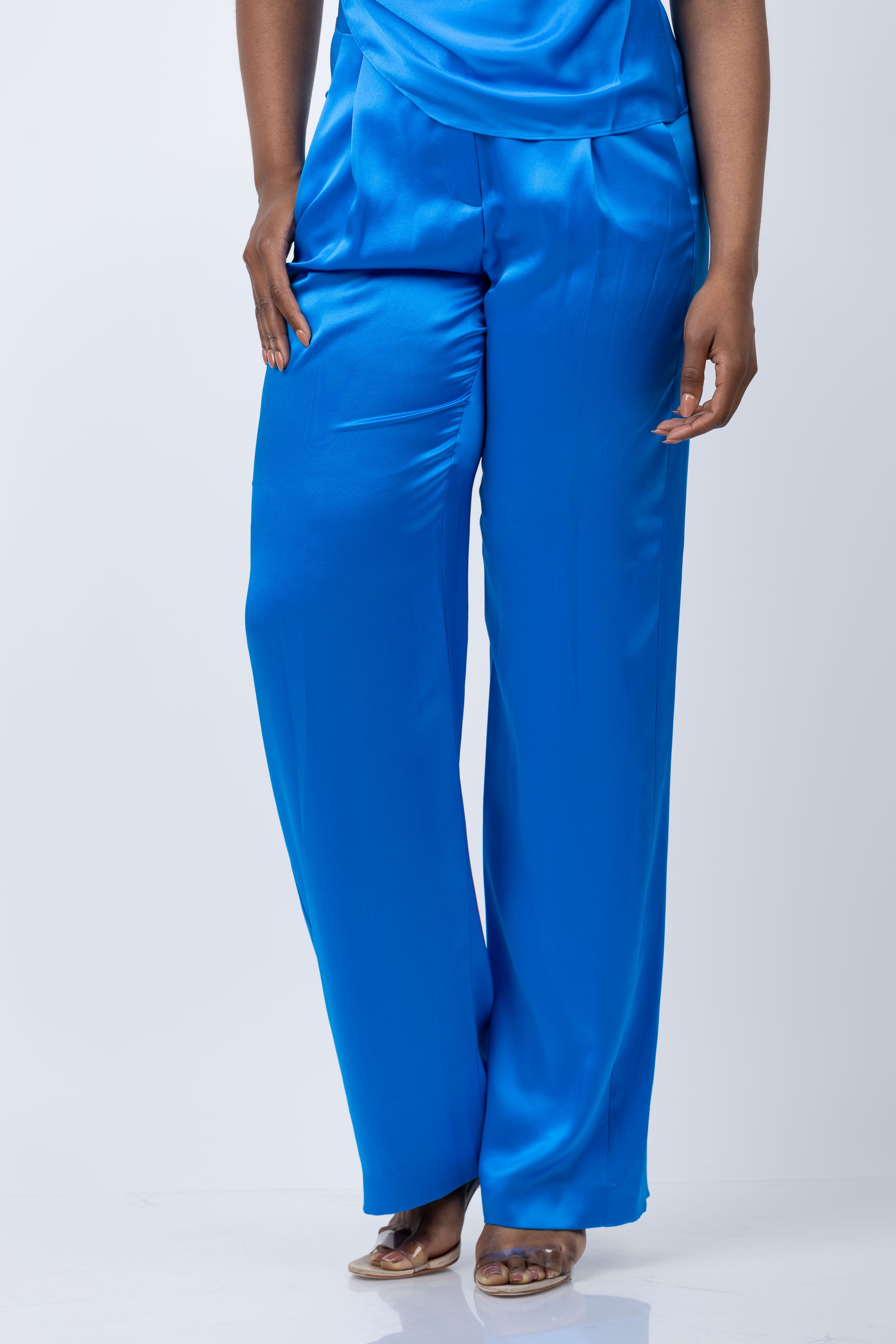 Indulge in luxury with The Sei Wide Leg Trouser in Azul. Made from silk charmeuse, this high waisted trouser features pleating detail and hidden pockets for convenience. Perfect for any occasion with its elegant wide leg silhouette, center front fly, and hook and bar closure.