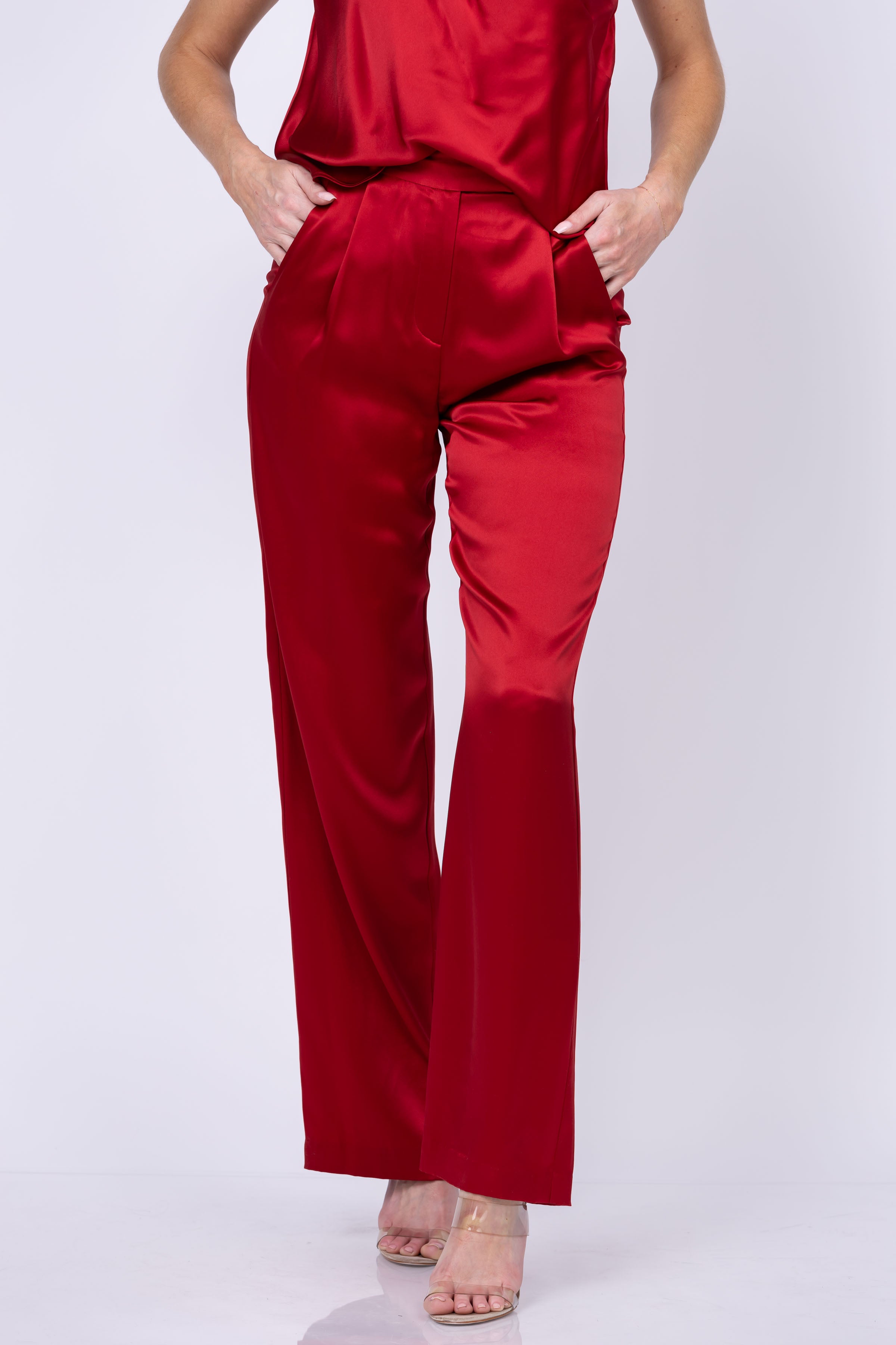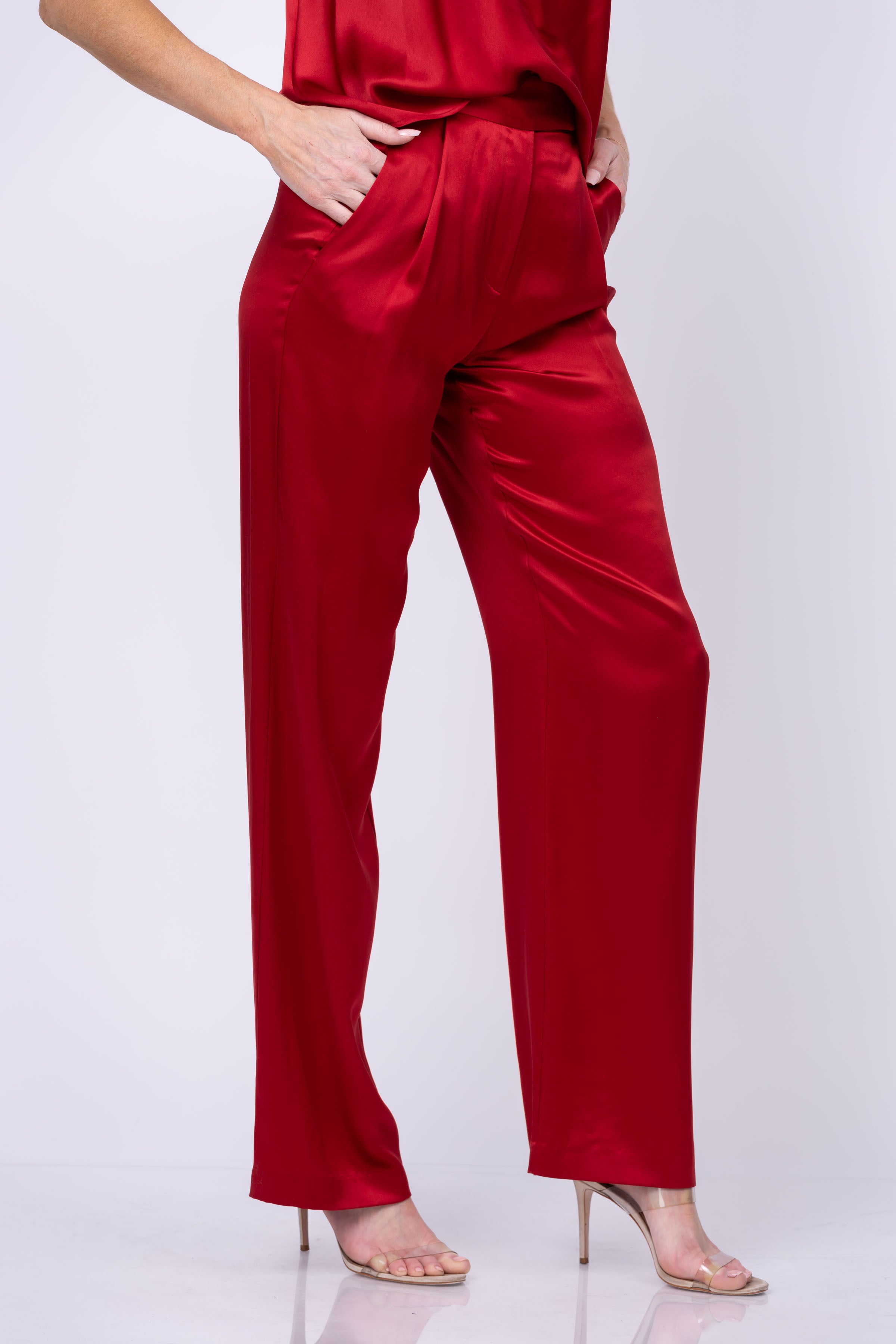 Experience luxurious comfort and effortless style with The Sei Wide Leg Pants in Cherry. Made from 100% silk and featuring a silky satin fabric, these pants will wrap you in softness while exuding elegance. Perfect for any occasion, you'll feel confident and chic in these must-have pants!
