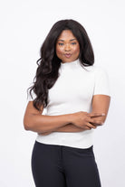 Experience timeless elegance with the Theory Leenda Solid Top in White. Made from soft merino wool, this fitted knit top features a mock neckline and short sleeves, offering a sleek silhouette that enhances your natural shape. Its hip-length cut and pullover style make it an easy staple for effortless layering or standalone wear. Perfect for elevating both casual and polished looks with enduring comfort and style.