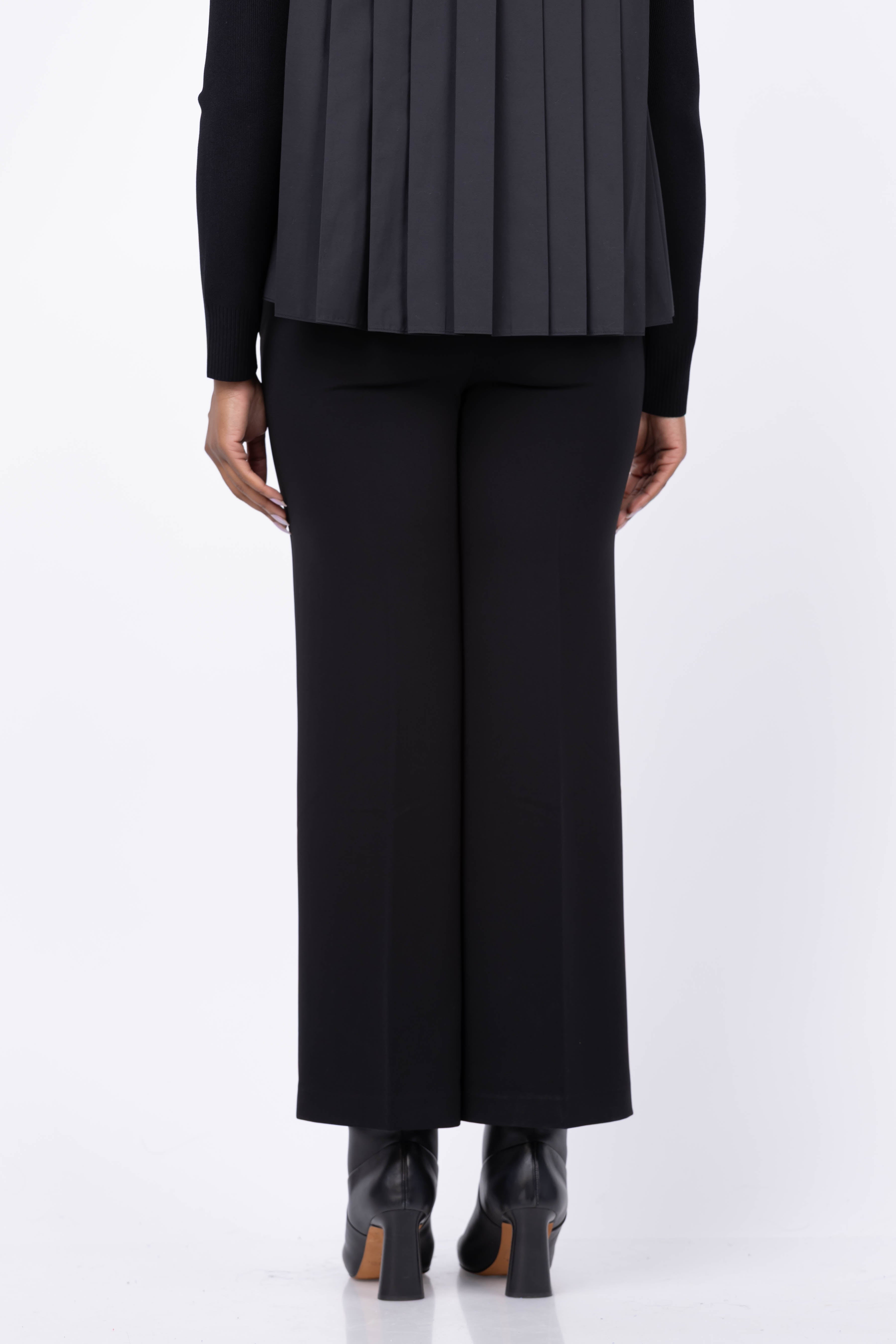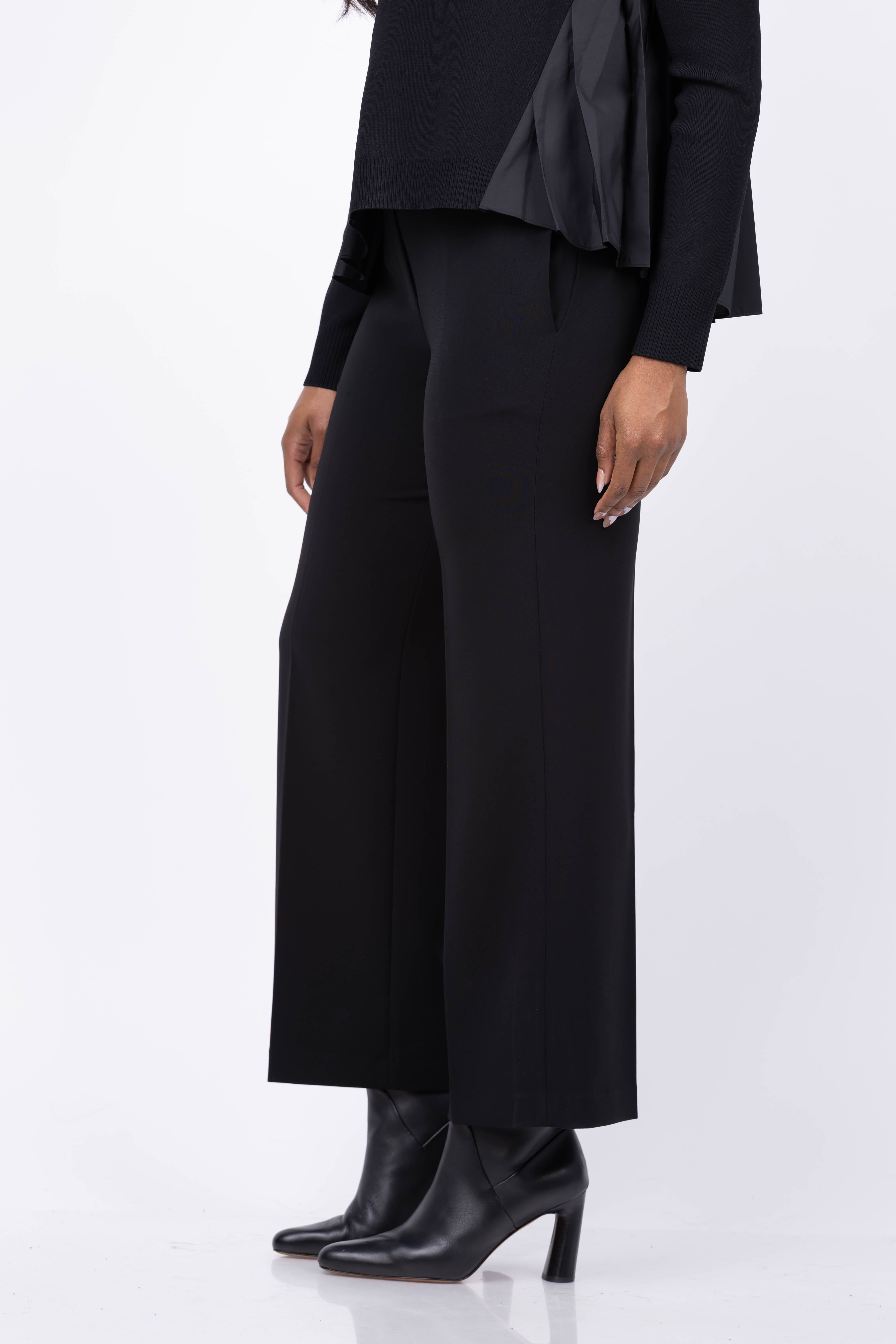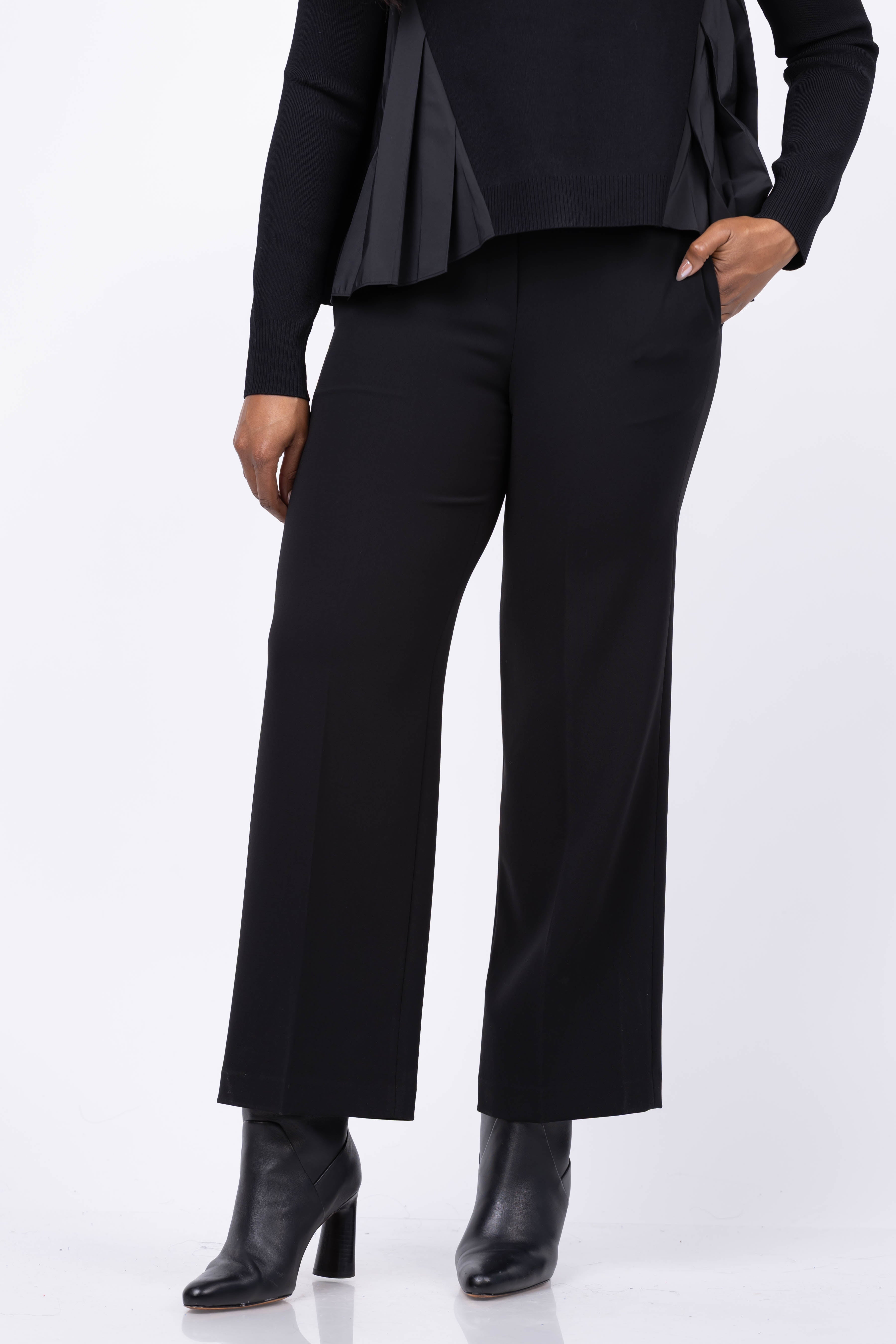 Elevate your wardrobe with the Theory Wide Leg Pull-On Pant in Black. Crafted from signature Japanese crepe, these pants provide a smooth, wrinkle-resistant finish while offering a softly draped, wide-leg silhouette. Thoughtfully designed with on-seam and back welt pockets, they blend effortless style with practical details. Perfectly versatile, they pair seamlessly with tanks, tees, or shirting for a polished look that moves with you throughout your day.