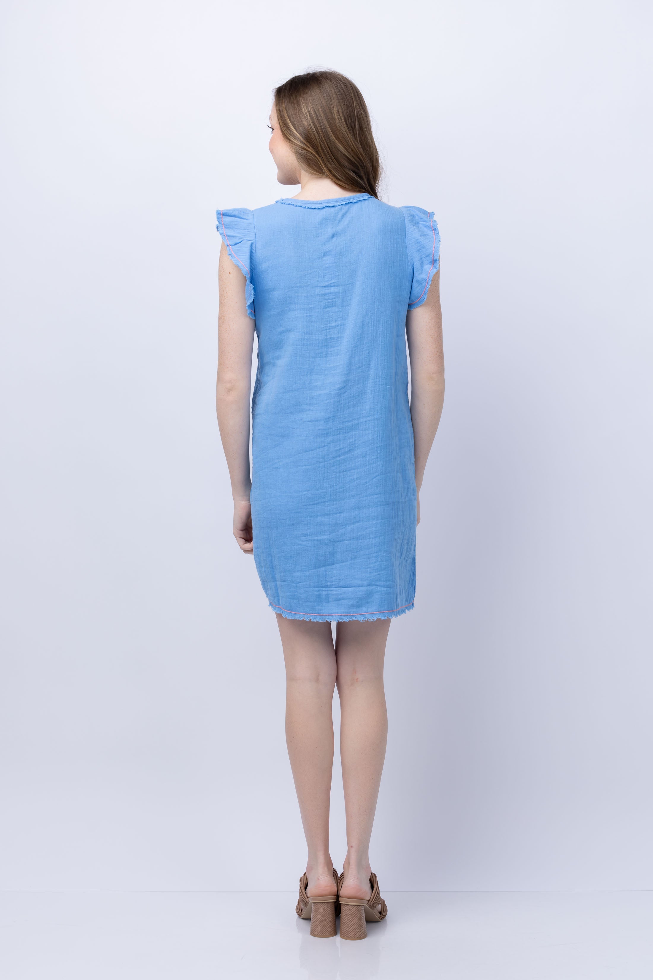Lilla P Flutter Sleeve Gauze Dress in Marina
