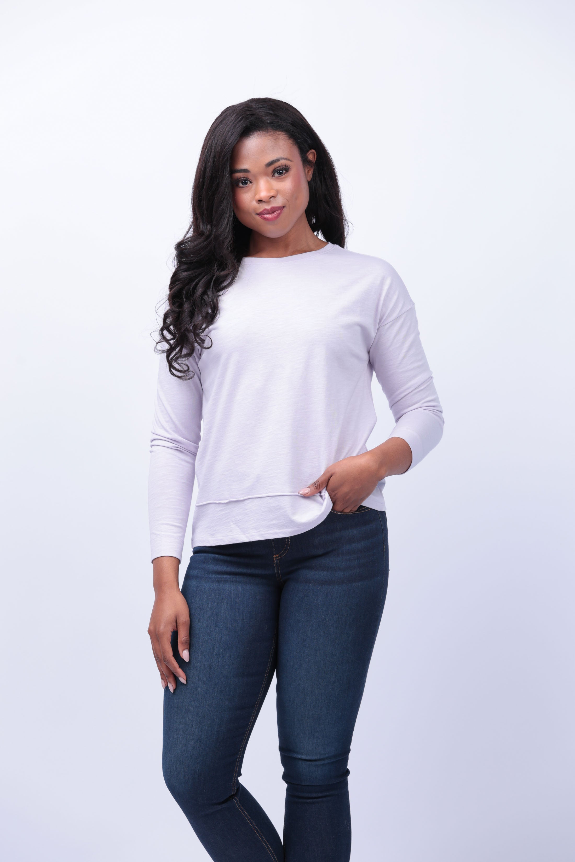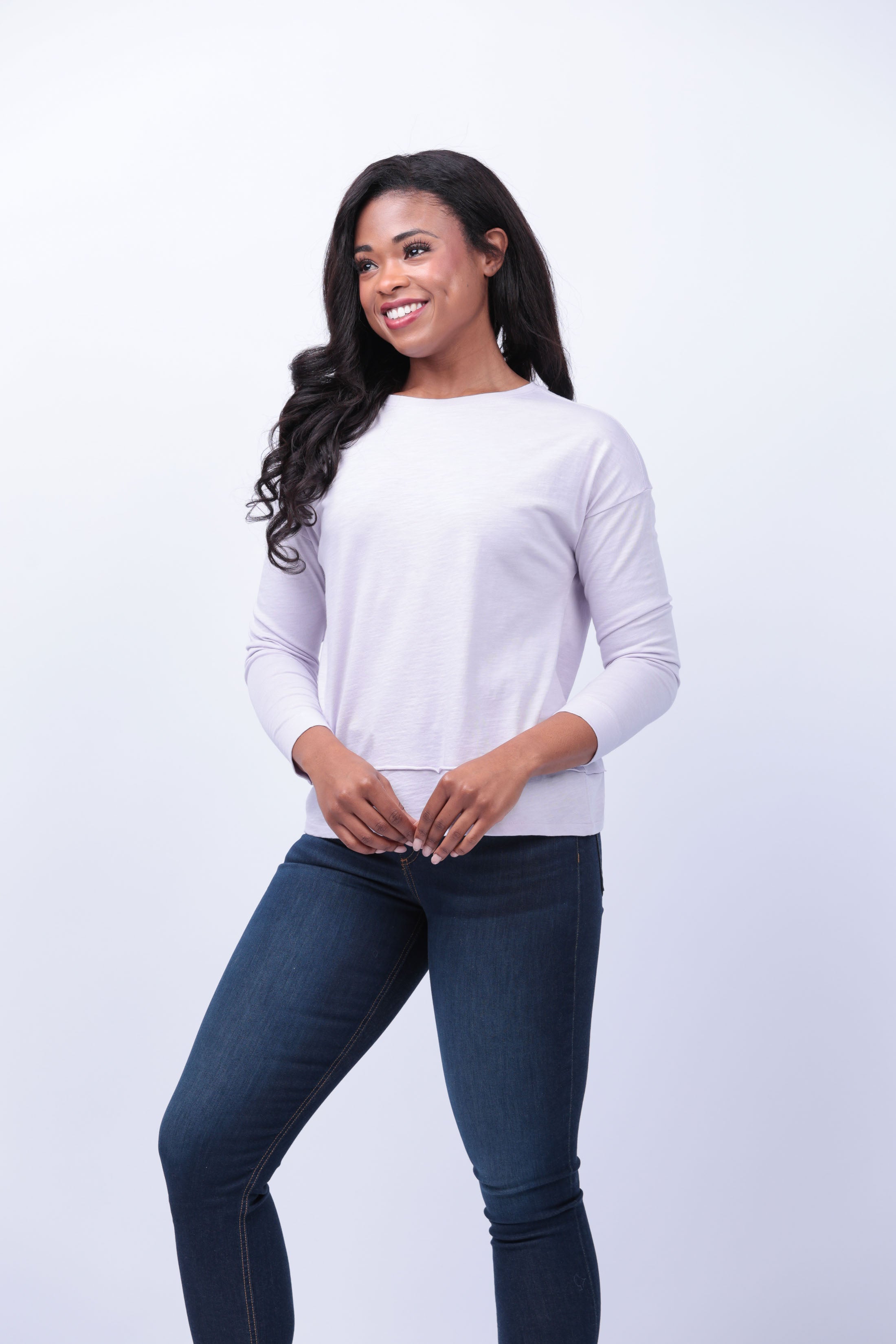 Introducing the Lilla P Wide Hem Drop Shoulder Boatneck Top in Thistle. This Flamé Modal tee boasts a relaxed fit, dropped shoulders, and super soft fabric for ultimate comfort. Upgrade your tee collection and bring a touch of freshness to your wardrobe.