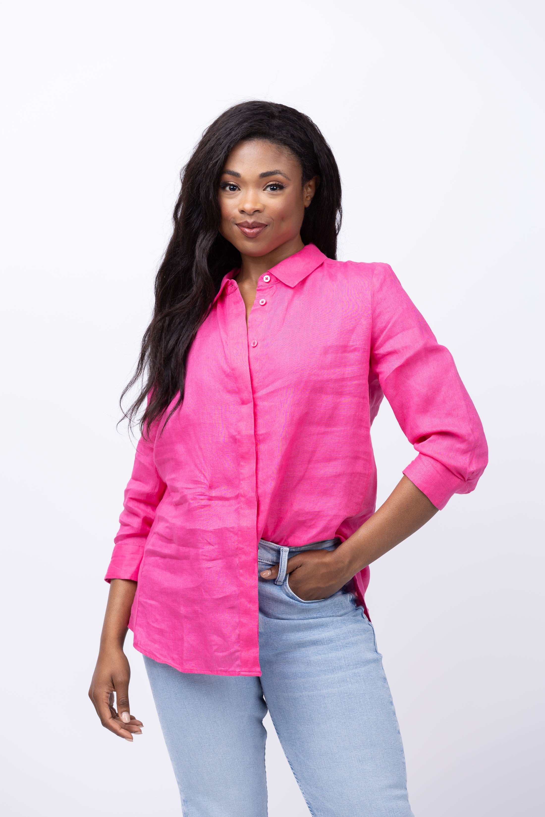 Unleash your inner fashionista with the hot pink Tyler Boe Button Down Tunic. Featuring a playful collar and oversized fit, this versatile piece can be dressed up or down. Perfect for adding a pop of color to any outfit!