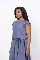 The Great. The Super Bloom Eyelet Top in Vintage Blue