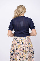 The Ulla Johnson Gemma Short Sleeve Knit Top in Midnight is a versatile essential for any wardrobe. Crafted from lightweight pointelle knit with subtle openwork, it offers year-round comfort and style. Its slim fit makes it perfect for layering, while gently puffed sleeves add a romantic touch. Finished with delicate handmade crochet trims, this top combines artisanal detail with timeless elegance, making it a must-have piece for effortless sophistication.