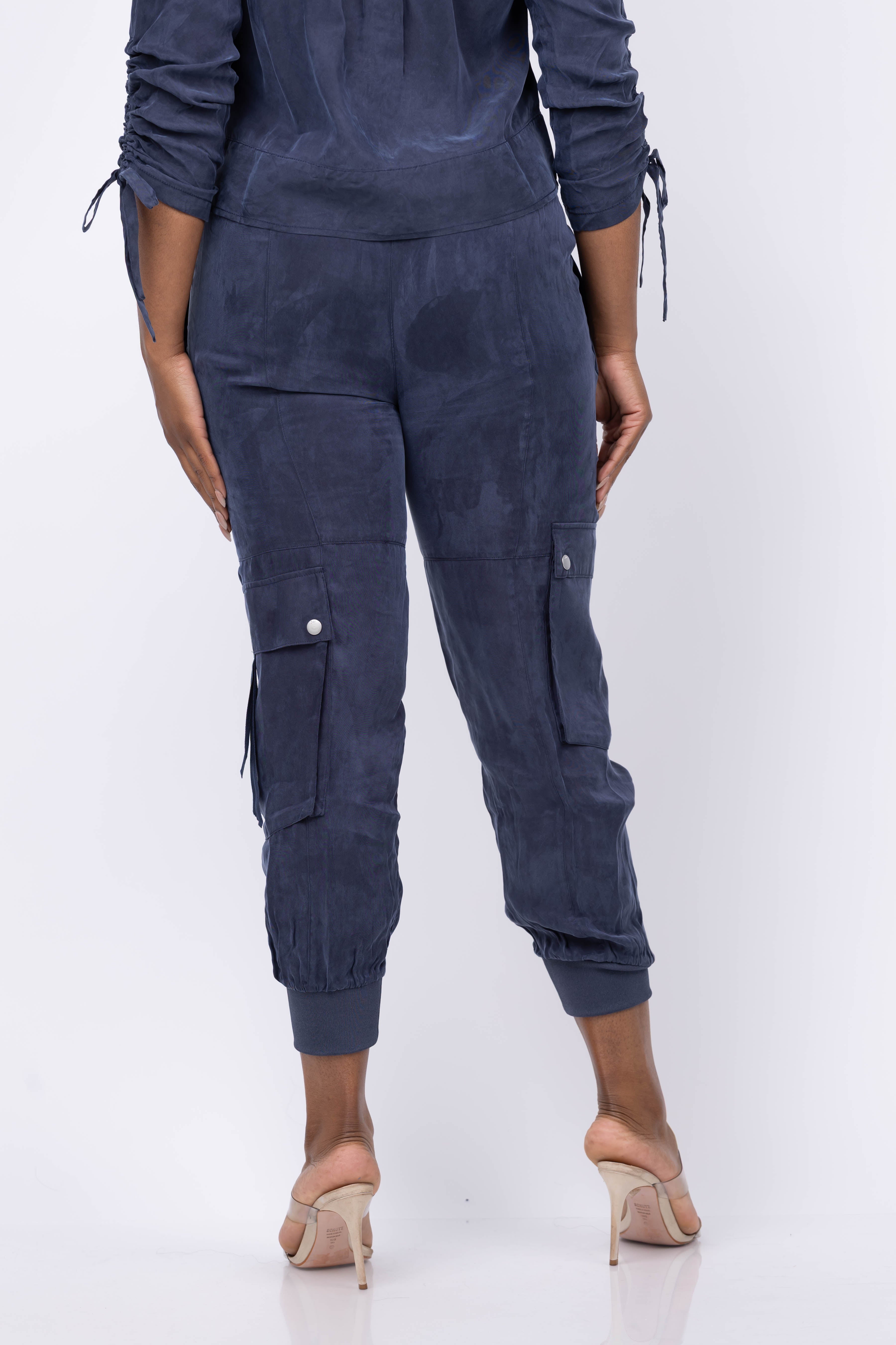 Discover modern-utilitarian style with the Cinq à Sept Washed Twill Harmony Pant in Navy. These drapey, pull-on joggers feature asymmetric cargo flap-patch pockets and trailing straps for a bold, contemporary look. Designed with a comfortable 28" inseam and front slant pockets, they effortlessly combine functionality with sleek ease—perfect for adding edge to your everyday wardrobe.