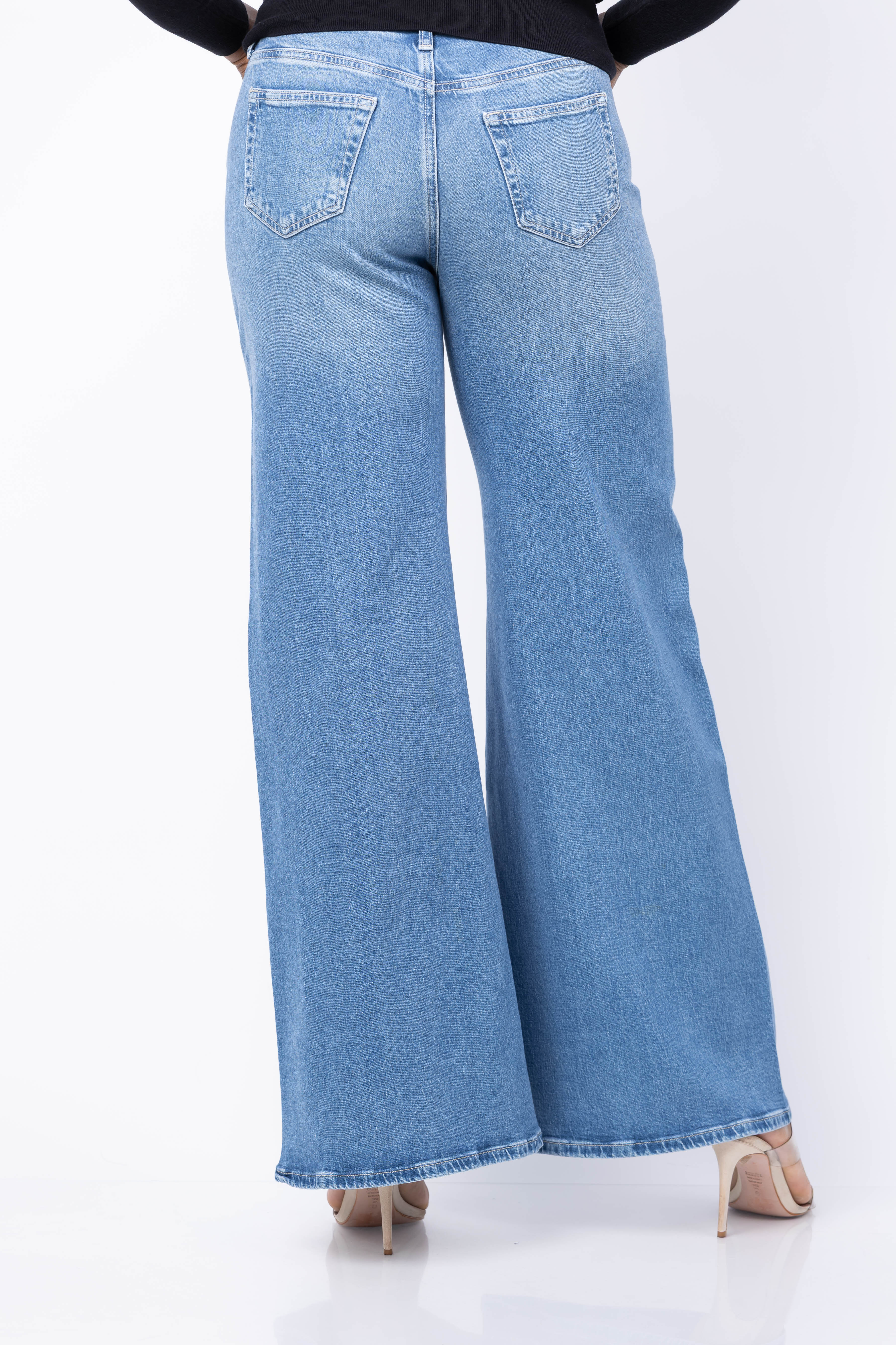 Experience the perfect balance of contemporary style and timeless comfort with the Beau wide-leg jean. This trending silhouette features a slim, sculpted fit through the hips that gracefully transitions to a wider leg, creating an elongating effect that flatters every figure. The signature twisted seam adds an unexpected design detail that elevates the classic denim aesthetic. Crafted from classic stretch denim in a versatile light-medium Kona wash, the high-rise cut pairs with everything from crop tops to oversized sweaters. Complete with a traditional 5-pocket design and secure zip fly with button closure, the Beau has quickly become an L'AGENCE favorite for good reason—it's the effortlessly cool jean you'll wear on repeat.