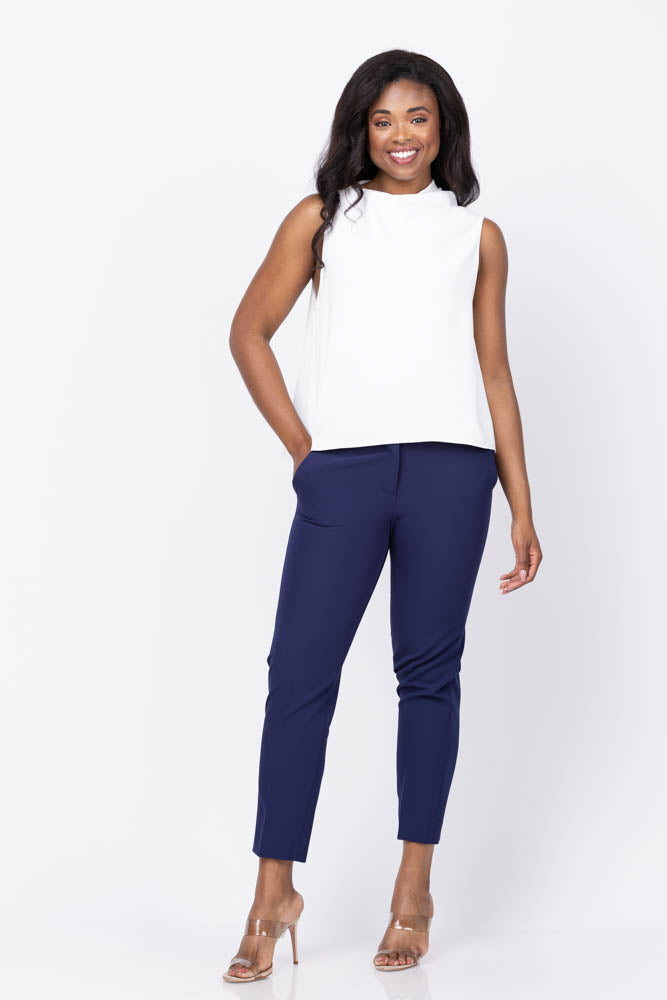It’s hard to imagine a wardrobe without this season’s staple, the skinny Nicola Cady pant. This goes-with-everything style is a straight leg with a hint of stretch that hits at the perfect length, just above the ankles. Wear it with an ankle strap heel or dress it down with sneakers.