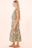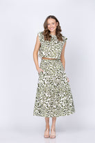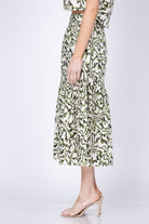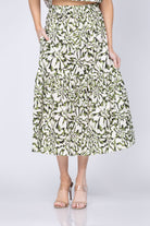 Meet the Itzel Skirt—where comfort meets undeniable style. This midi-length essential showcases the same captivating green and black Abstract Floraburst print on cream cotton poplin, creating visual impact with every step. The hidden elasticized waistband ensures all-day comfort without sacrificing silhouette, while functional side slit pockets keep your essentials close. A dramatic wide ruffled hem adds movement and dimension, elevating the everyday midi into something truly special. Pair it with the coordinating Alina top to create a cohesive, effortlessly chic daytime set that feels both polished and relaxed. Versatile enough for brunch, errands, or casual gatherings—the Itzel Skirt is the piece that makes getting dressed feel effortless.