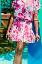 Step into summer in style with the Misa Los Angeles Marion Skirt! Made from airy, lightweight chiffon, this fuchsia floral skirt boasts layers of romantic ruffles that add a touch of femininity to any outfit. The elastic waistband ensures a comfortable fit, while the curved hem and longer back create a flattering silhouette. Whether you pair it with a white tee or the coordinating Maria top, this skirt is sure to turn heads and make you feel confident and beautiful all season long!