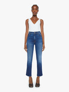 Embrace bold style with MOTHER Denim's bestselling high-rise flare. The Hustler Ankle features a flattering ankle-length inseam and crisp hem that elongates your silhouette. Crafted from comfortable stretch denim in the Taking Chances dark blue wash, this pair showcases artful whiskering and knee fading for effortless edge. Perfect for dressing up or down, these jeans deliver the confident fit and timeless appeal that make them a wardrobe essential.