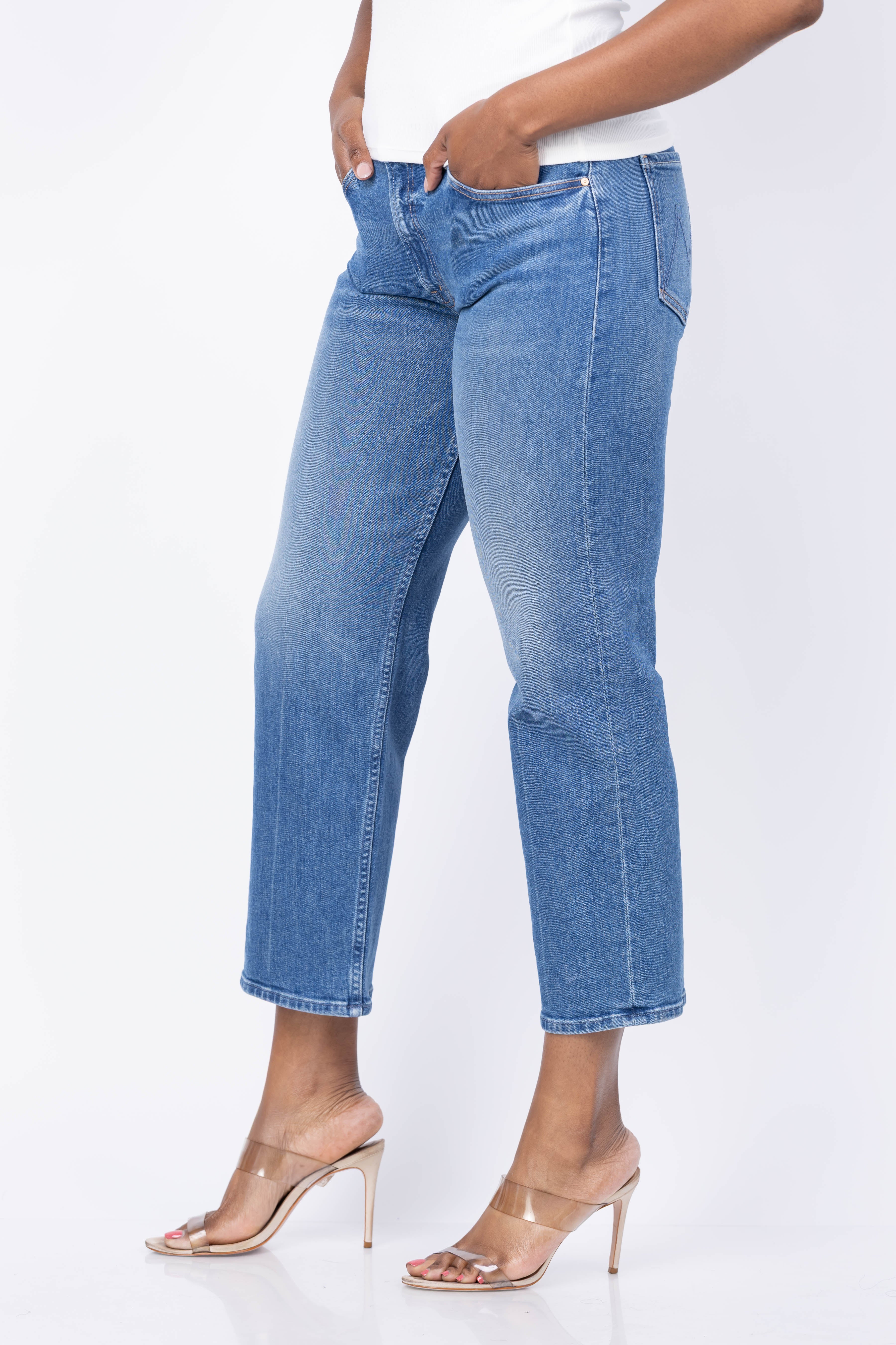Introducing the MOTHER Denim The Newbie Ankle in Hokey Pokey—a fresh take on the classic high-rise straight-leg silhouette. Crafted from rigid denim in a versatile mid-blue wash, this style features distinctive whiskering and fading at the knees for authentic character. The zip fly, ankle-length inseam, and clean hem create a polished, modern look that transitions effortlessly from casual to dressed-up. Whether you're building your denim collection or refreshing your everyday rotation, The Newbie Ankle delivers timeless style with contemporary edge.