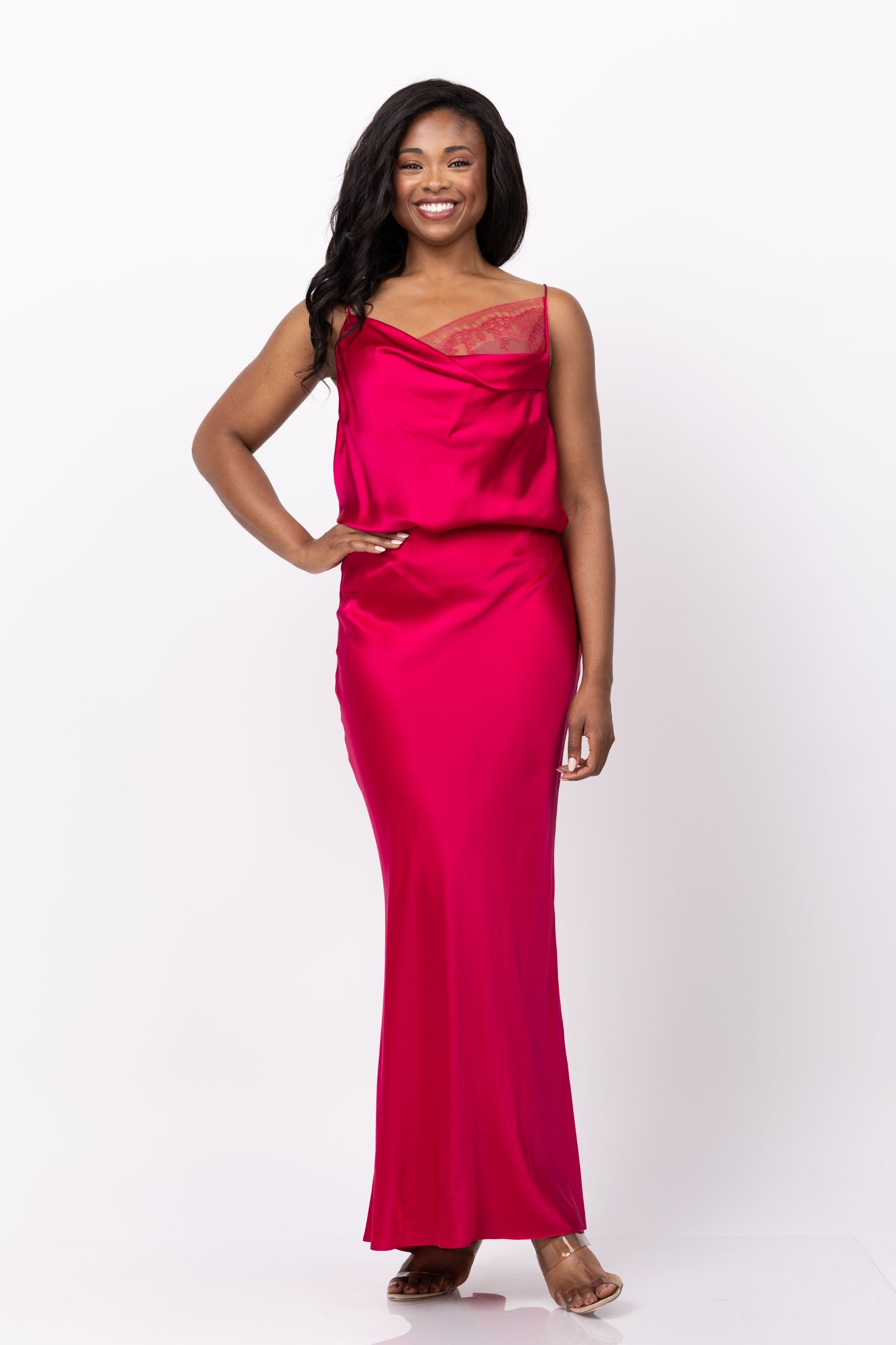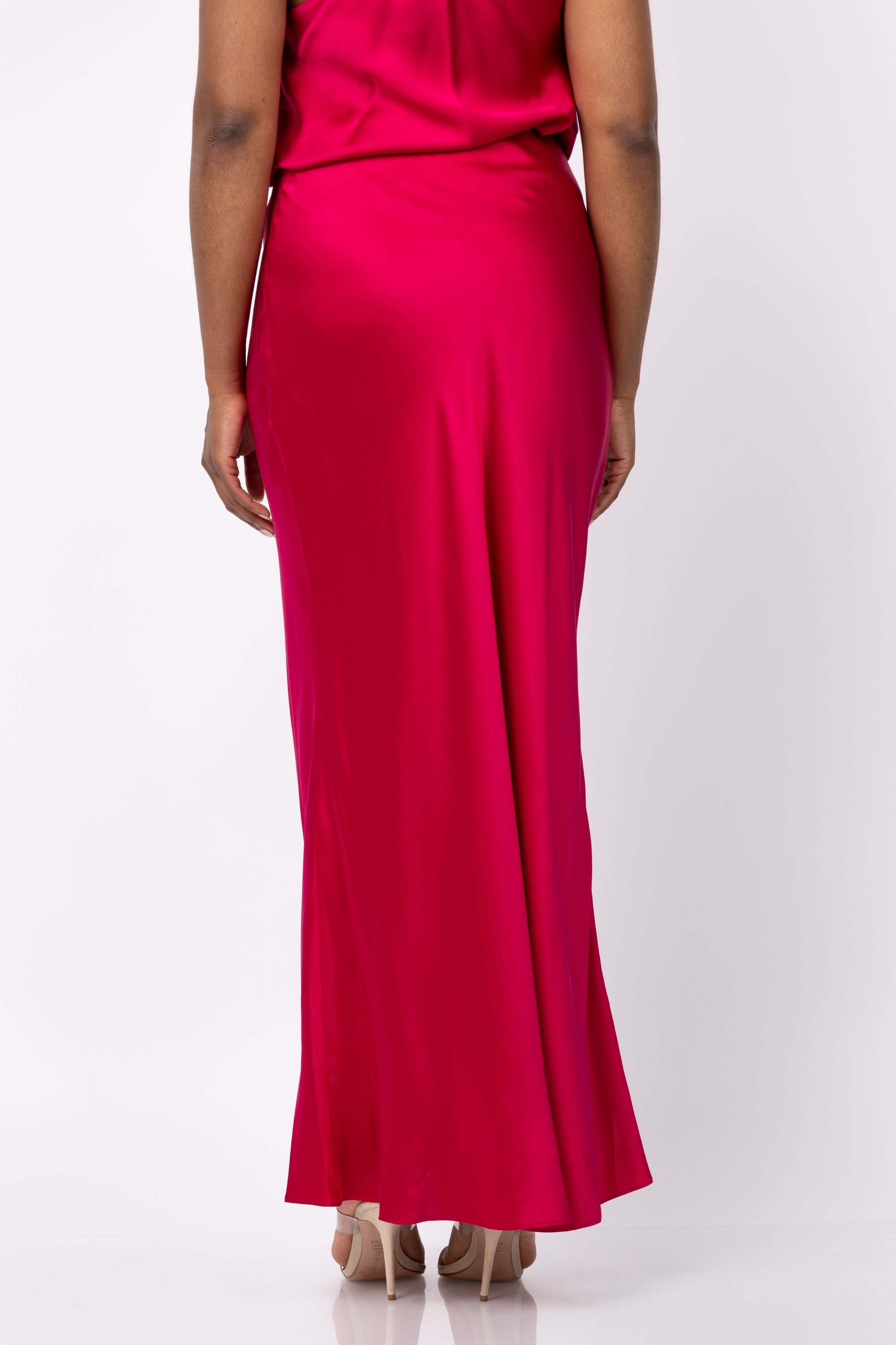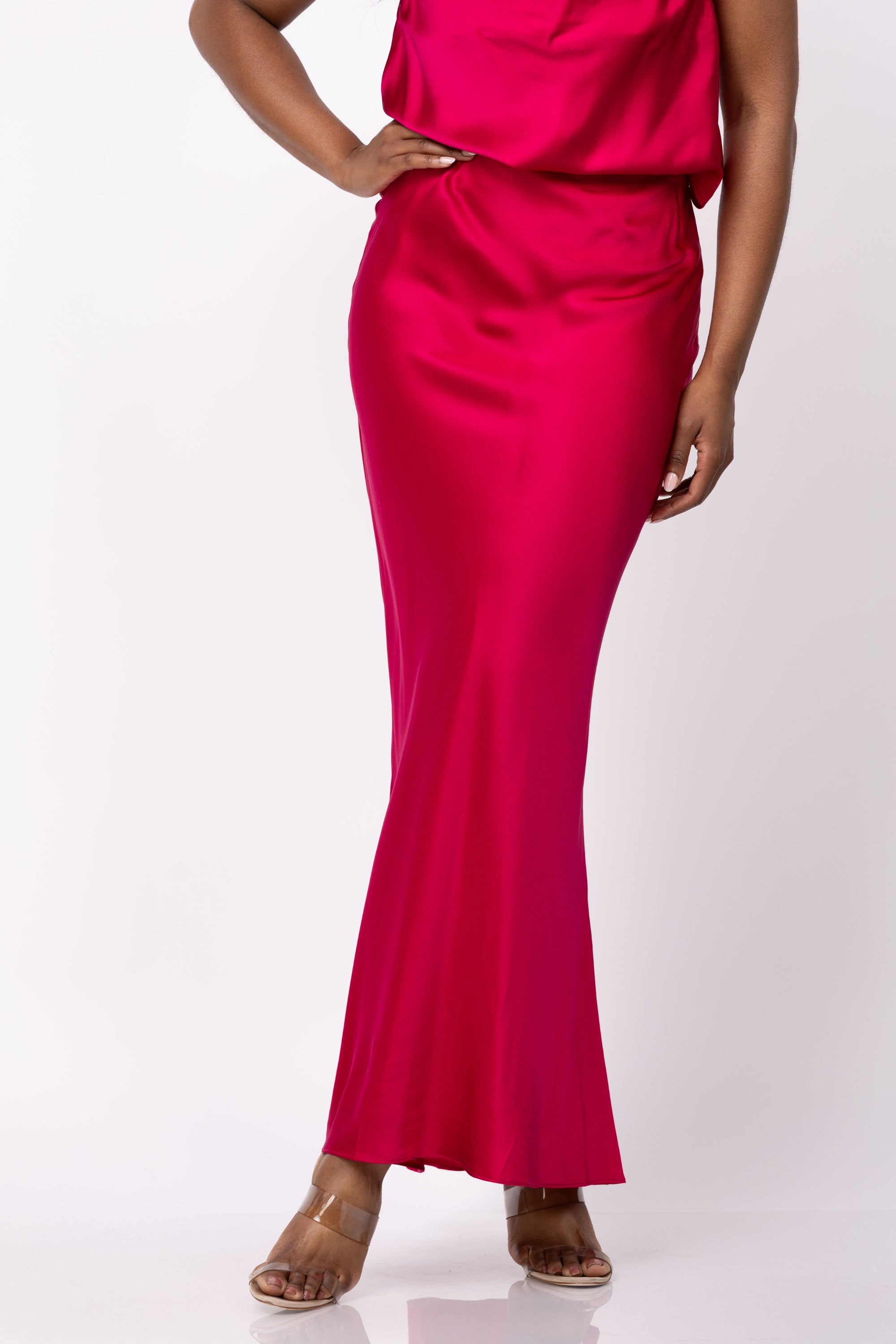 Indulge in luxury with the Sei Bias Maxi Skirt in Raspberry. Made from silk charmeuse, this maxi skirt offers a sleek and trendy bias silhouette that flatters any figure. Fully lined for comfort and with a hidden zipper for a seamless look, this imported piece is truly a must-have for your wardrobe.