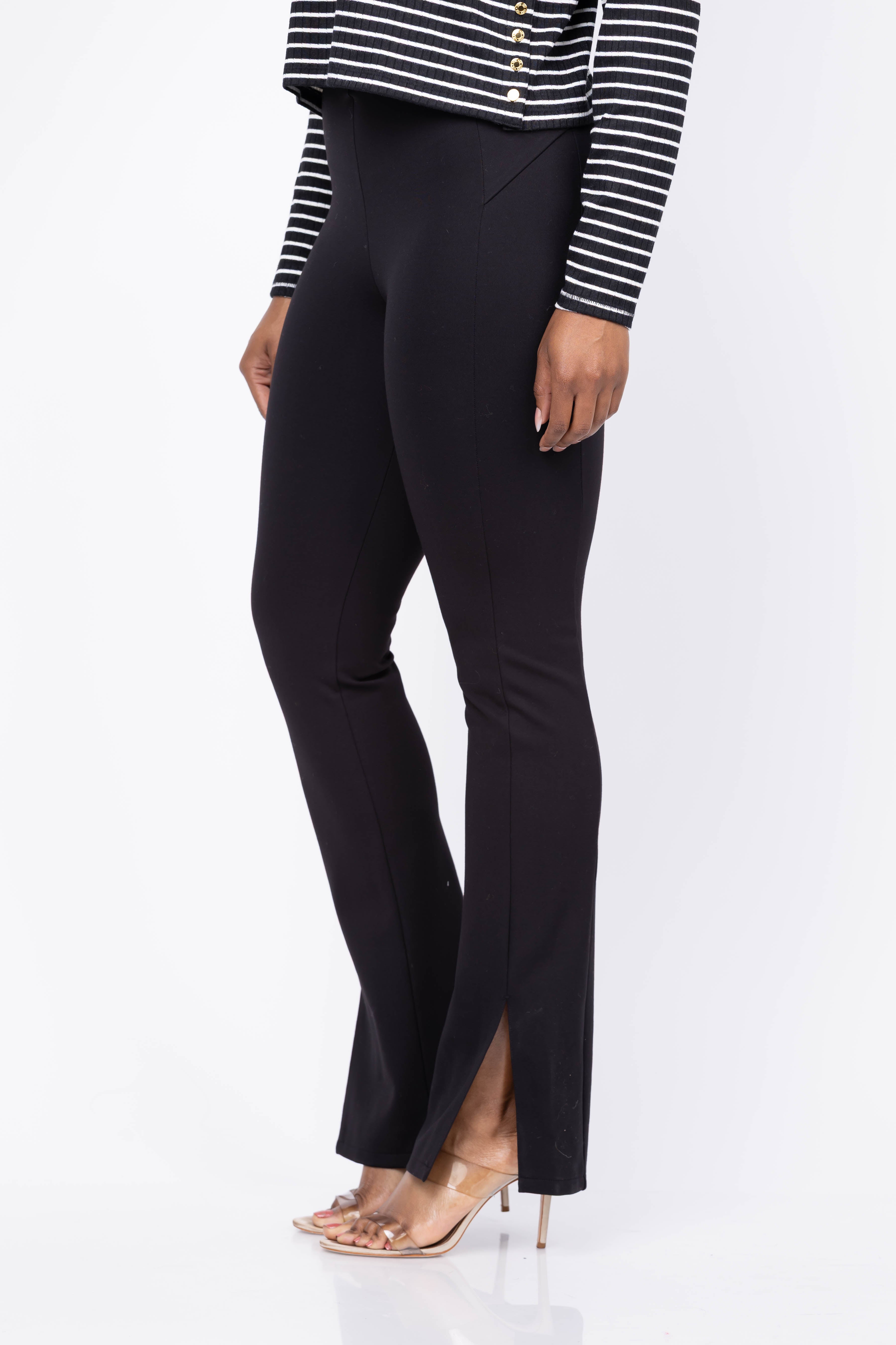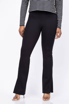 Experience the perfect blend of style and comfort with the Theory Slit Flood Legging in Black. Featuring a subtle front slit, these leggings add a graceful shape at the hem for a flattering silhouette. Crafted from Motion Ponte fabric enriched with responsibly sourced viscose, they offer a smooth, close fit that moves with you. The sleek pull-on design balances structure and stretch, making these leggings ideal for both day-to-night wear. Elevate your wardrobe with comfort and conscience combined.