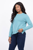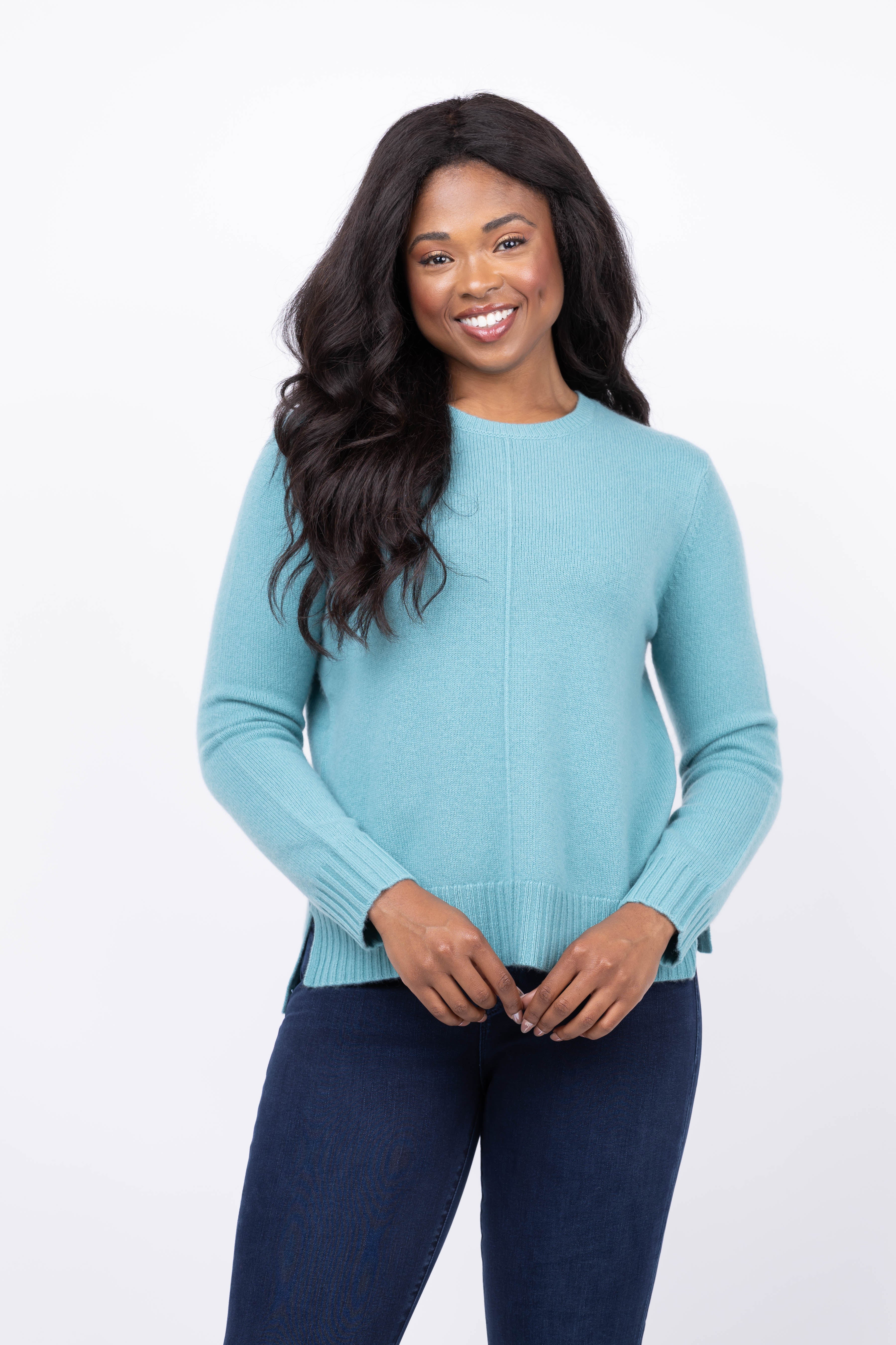 Elevate your wardrobe with the Tyler Boe Asha Cashmere Sweater in Agean. Made from 100% cashmere, this sweater offers a luxurious feel and timeless style. Its classic crew neckline and subtle center stitch detail add refined touches, while the ribbed cuffs and hem ensure a comfortable fit. Whether layered or worn alone, its relaxed silhouette makes it an effortless go-to piece season after season. Embrace warmth and elegance with a sweater designed to become your favorite essential.