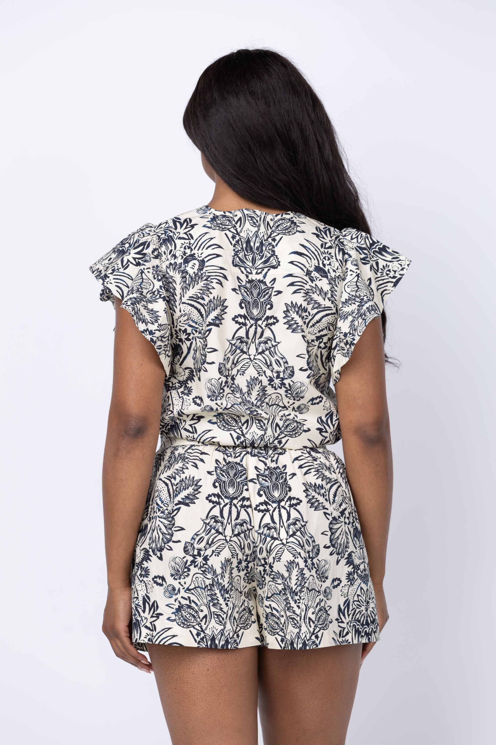 The Ulla Johnson Severine Top brings effortless elegance to your everyday wardrobe. Crafted from breathable cotton poplin, this striking piece showcases a symmetrical botanical print with intricate batik textures in classic black and ivory. Signature flutter sleeves add romantic movement, while the relaxed silhouette transitions seamlessly from casual denim pairings to polished tailored looks. A versatile essential that celebrates artisanal design and timeless style.