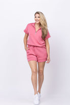 Elevate your warm-weather wardrobe with the Varley Atrium High Rise Short 4.5 in Rapture Rose. Luxuriously crafted from exclusive DoubleSoft® fabric, these shorts deliver unmatched comfort with sophisticated style. The flattering high-rise, A-line silhouette creates an effortlessly chic look perfect for spring and summer days. Featuring a distinctive dipped drawcord and deep hem panel, these versatile shorts pair beautifully with knitwear or coordinating DoubleSoft™ tops. Experience the perfect blend of everyday comfort and refined design in this stunning Rapture Rose shade.