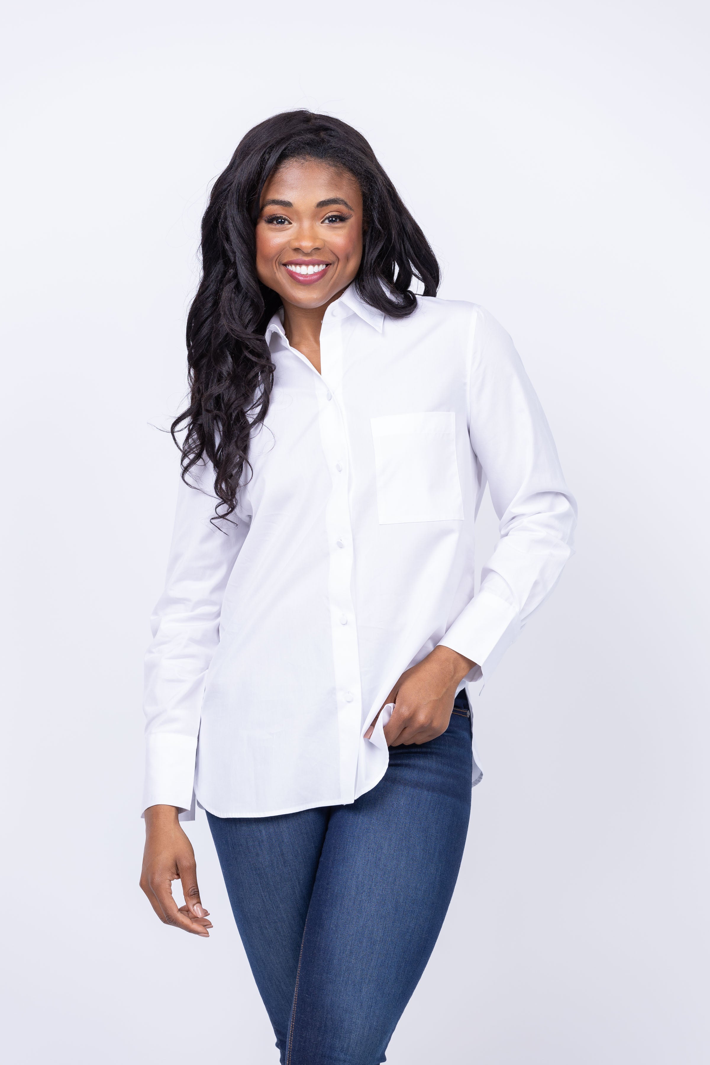 Elevate your wardrobe with Vince's Relaxed Straight Shirt in Optic White. Crafted in crisp cotton poplin, this classic button-front staple boasts an oversized, straight silhouette for a modern twist. Complete with self-covered shank buttons, it's the perfect blend of style and comfort.