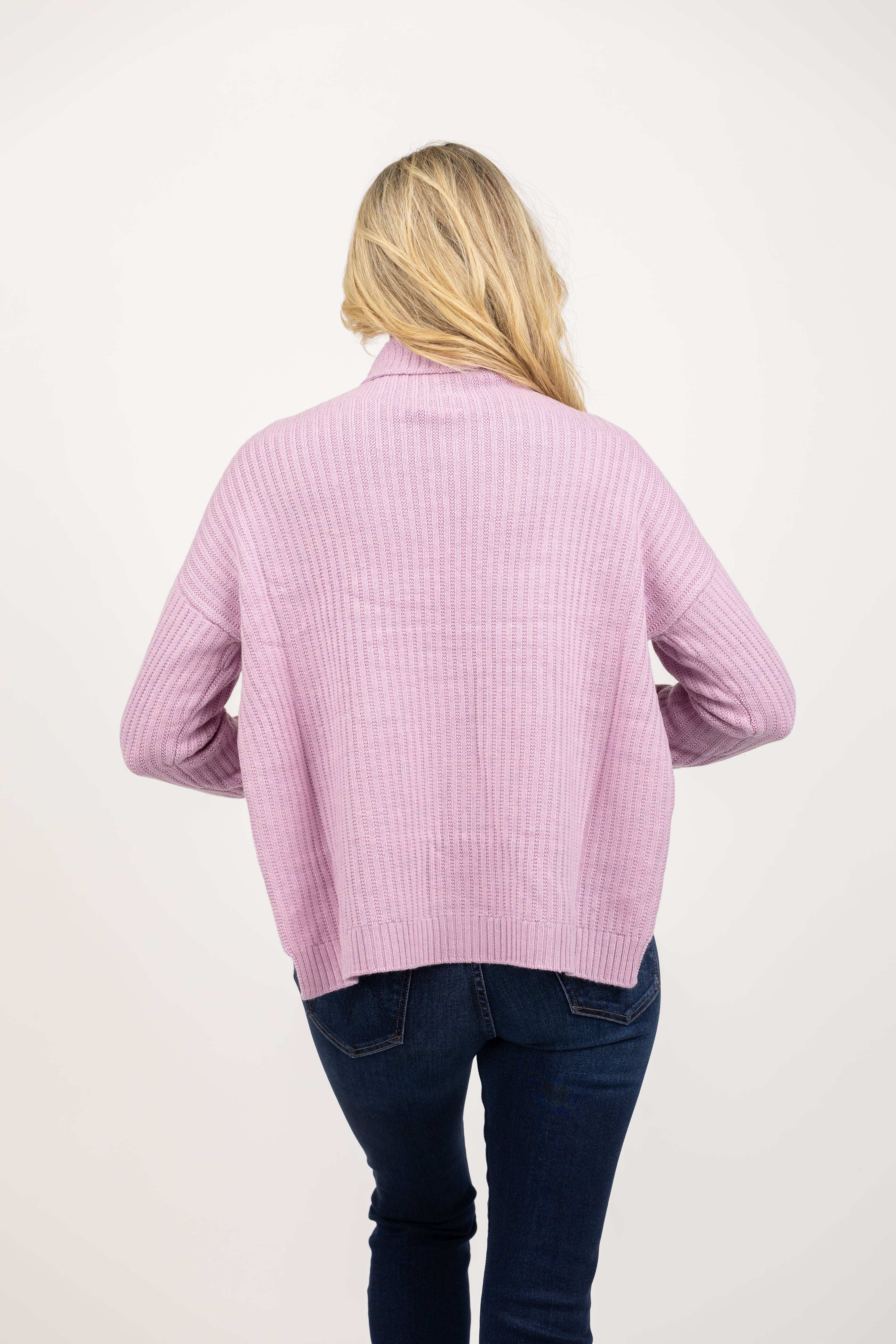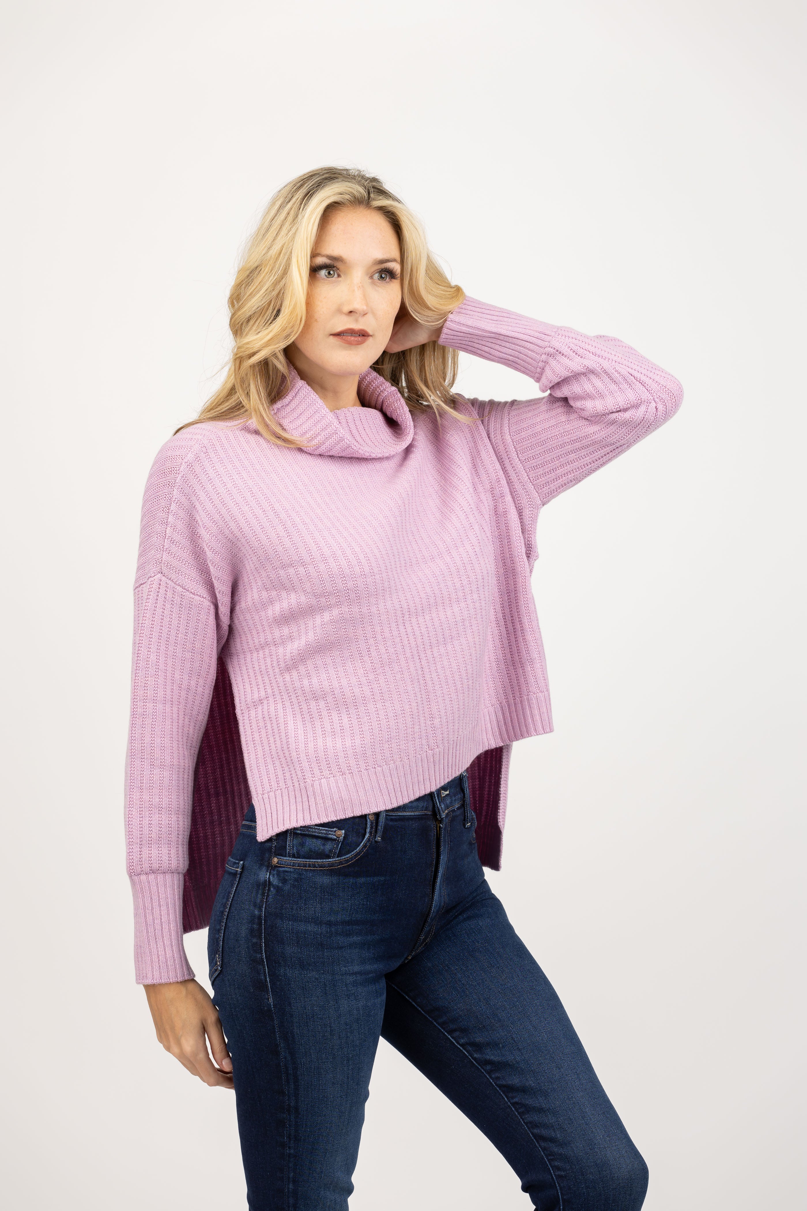The classic feminine pullover is back with the Christy Lynn Everly Sweater in Lilac. Made with plush merino wool, it features a cowl neck, ribbed knit detailing, and a high-low silhouette. Perfect for layering and transitioning into Autumn, this sweater will elevate any look.