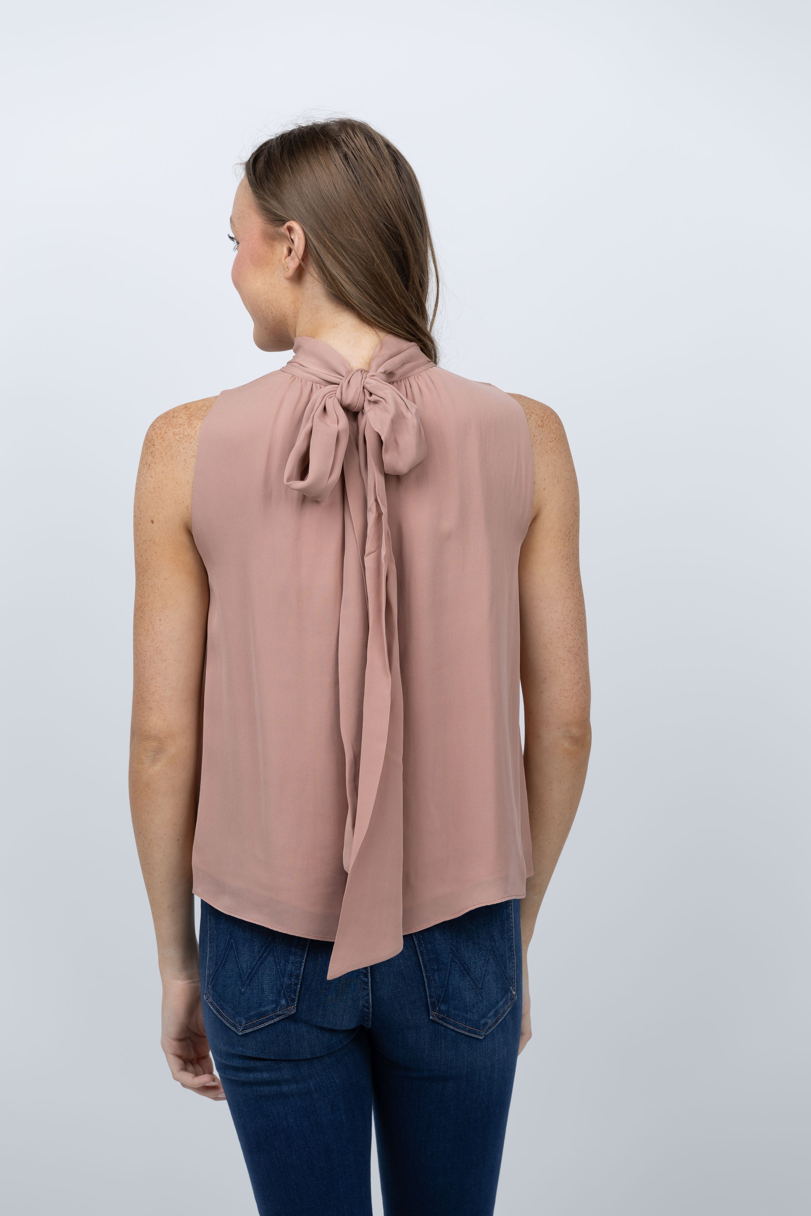 Indulge in the romantic and timeless beauty of the Christy Lynn Taylor Top in Dusty Pink. Made with delicate silk georgette, this basic blouse features elegant gathering detail at the neck for added volume, and a neck sash for a graceful touch. Fastens with a self-covered button at the back neck. Elevate your wardrobe with this beautiful piece!