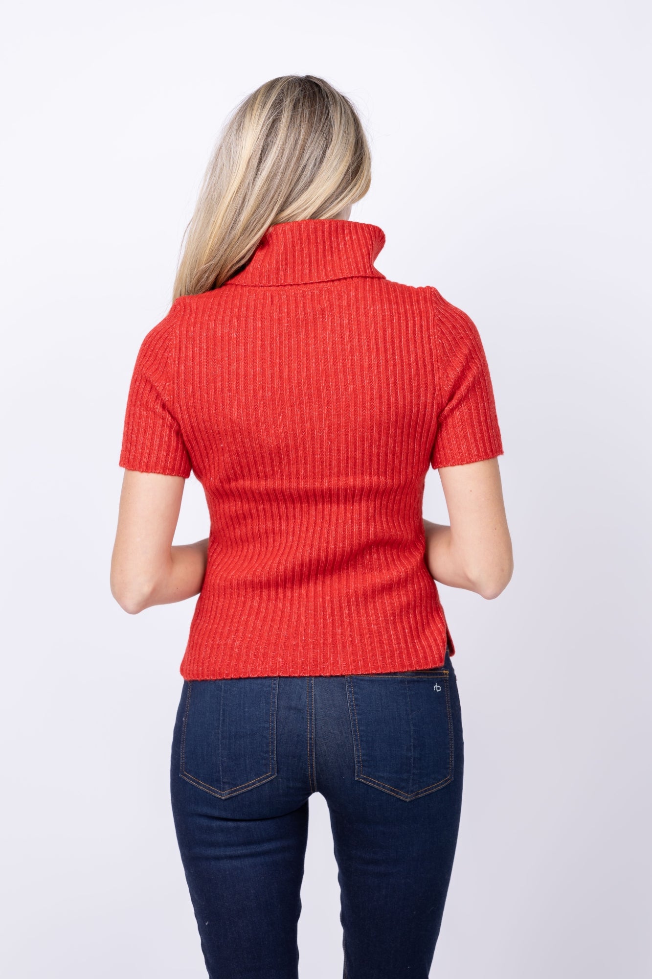 Unleash your fierce and stylish side with the Dh New York Mimi Top in Ruby. The ribbing stitch and chevron mitered front panel add a touch of sophistication, while the side slit detail at the hem adds a playful and trendy twist. Elevate your wardrobe with this must-have top. Experience style and comfort in one!