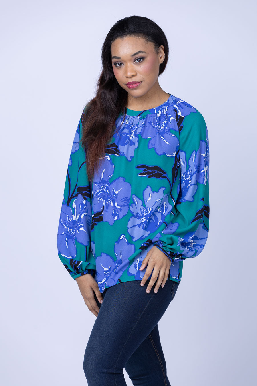 Experience effortless elegance and feel the light, airy fabric of the DVF Waldo Top in Outline Floral. Cut from a soft crepe, this beautiful top lights up any wardrobe. With a high crew neck, billowy long sleeves, and an easy flowing shape, you'll feel stylish and confident in any setting! Don't miss your chance to make a statement.