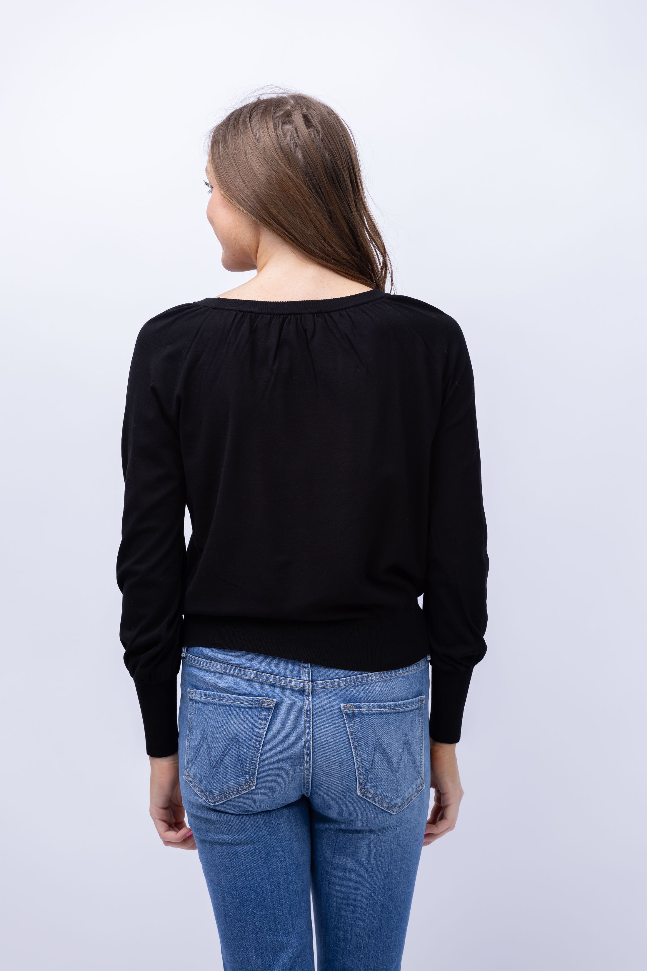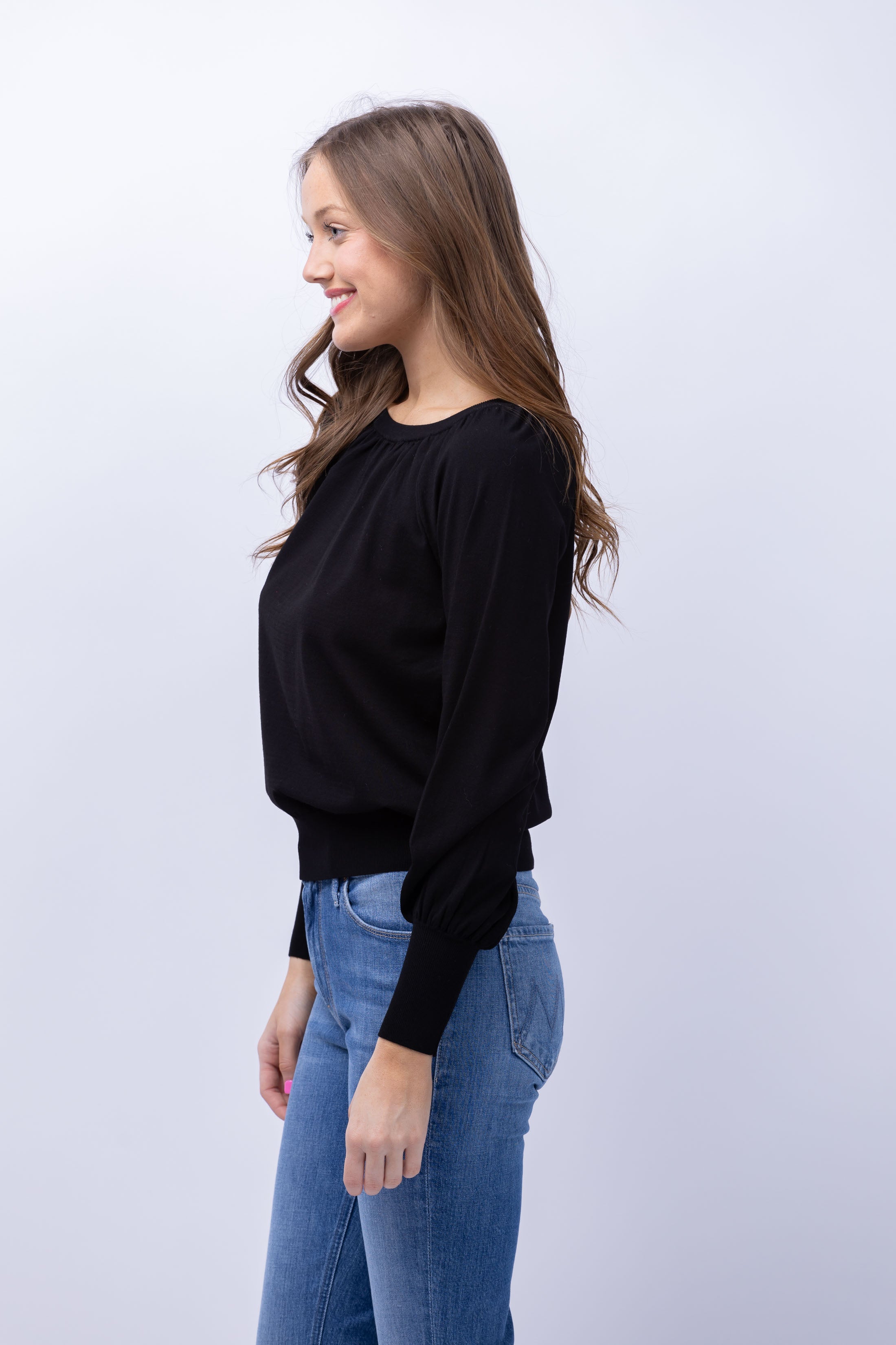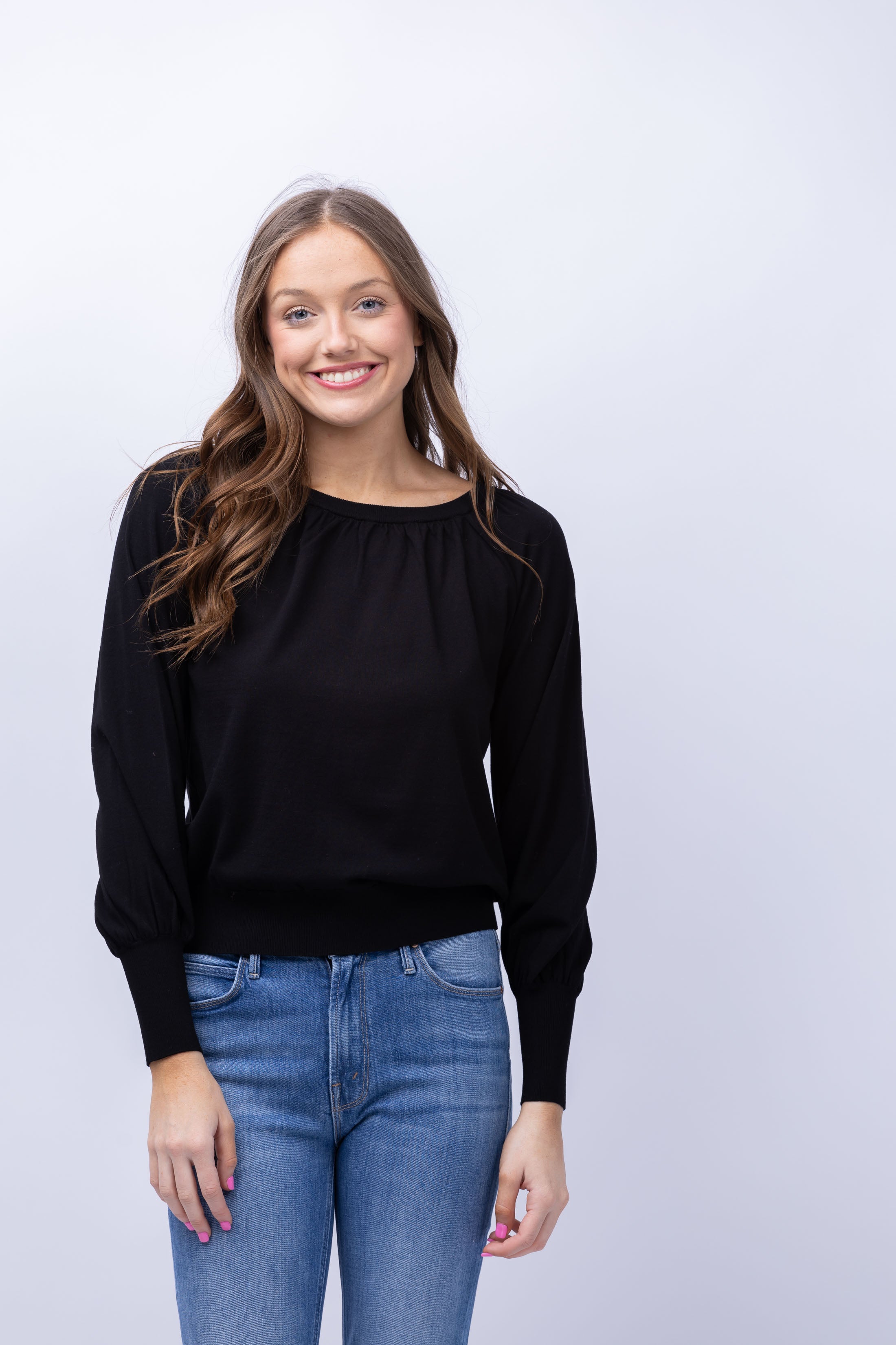 Introducing the Elliott Lauren Boatneck Sweatshirt in Black, the elevated sweatshirt with a boatneck and ruched neckline. Perfect for running weekend errands in style and comfort. Upgrade your wardrobe with this versatile piece.
