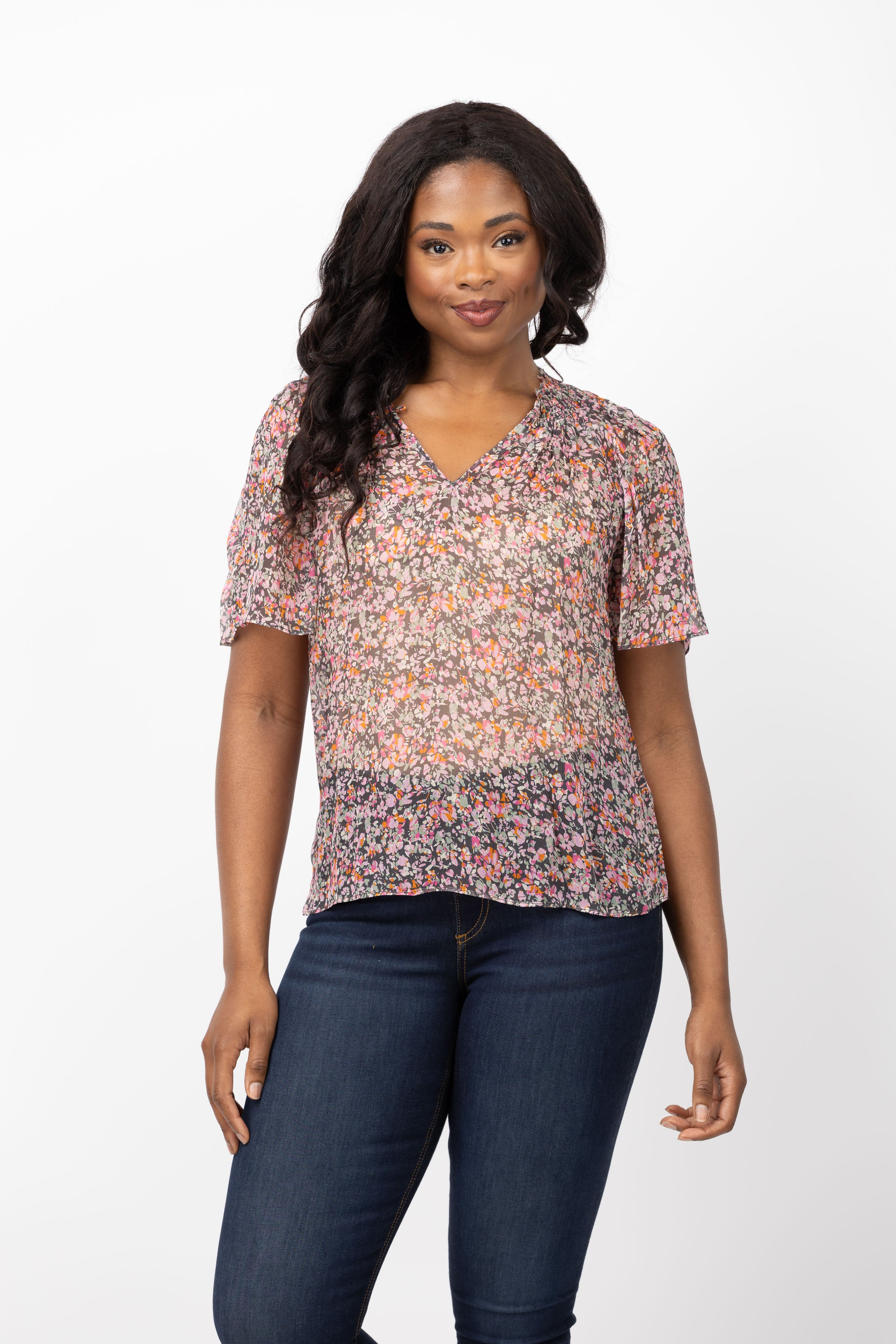 Embrace feminine elegance with the Gilner Farrar Arabella Blouse in Dusty Rose. This short sleeve blouse features delicate smocking details and a button front closure for a flattering fit. Pair with denim and a belt for a versatile and chic look.