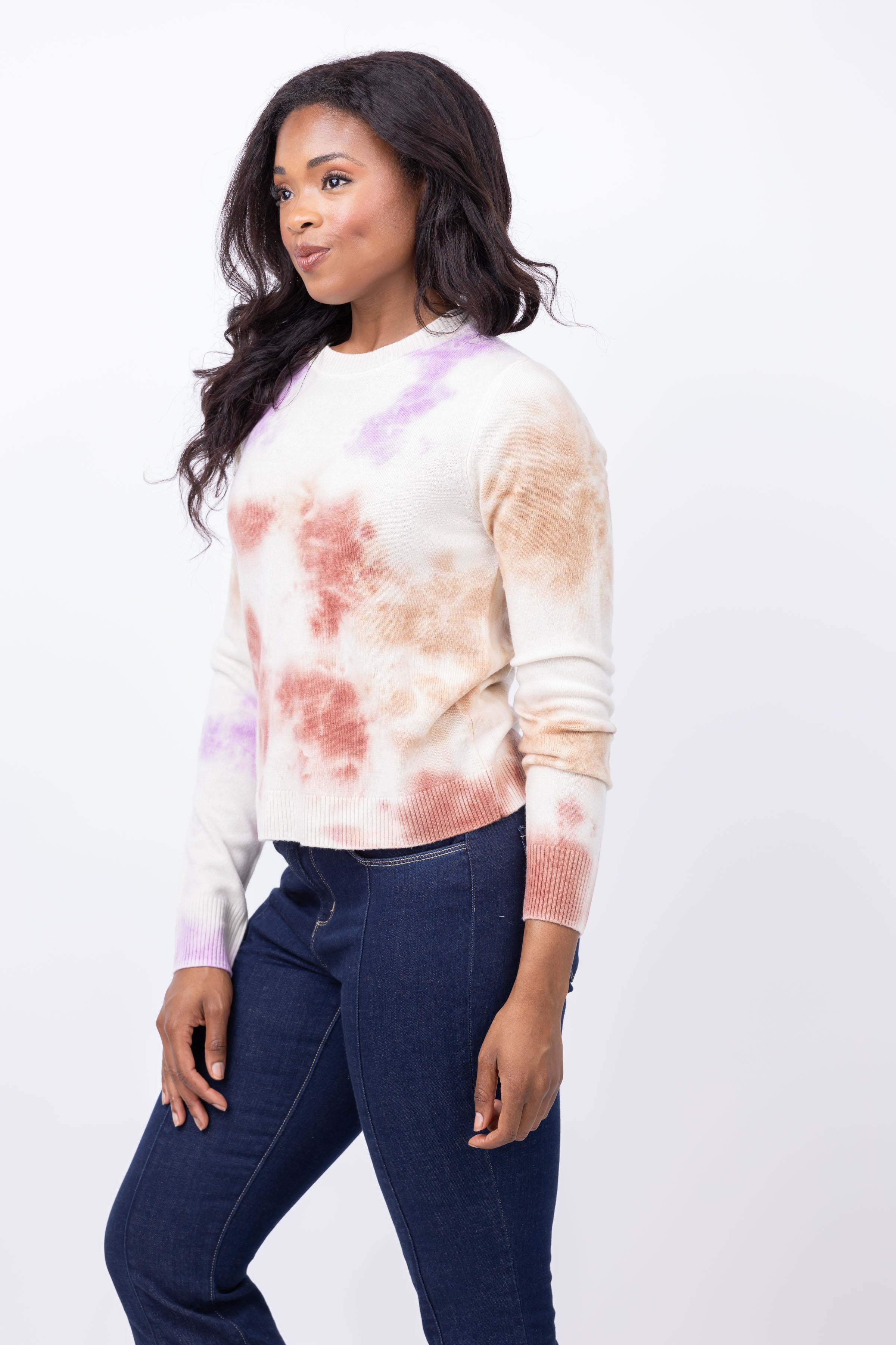 Experience luxury and uniqueness with our Lilla P Tie Dyed Sweater in Clove Multi. Made with cashmere blend yarn, this crewneck sweater boasts a flattering fit and one-of-a-kind tie dye design. Elevate your style and stand out with this hand dyed piece!