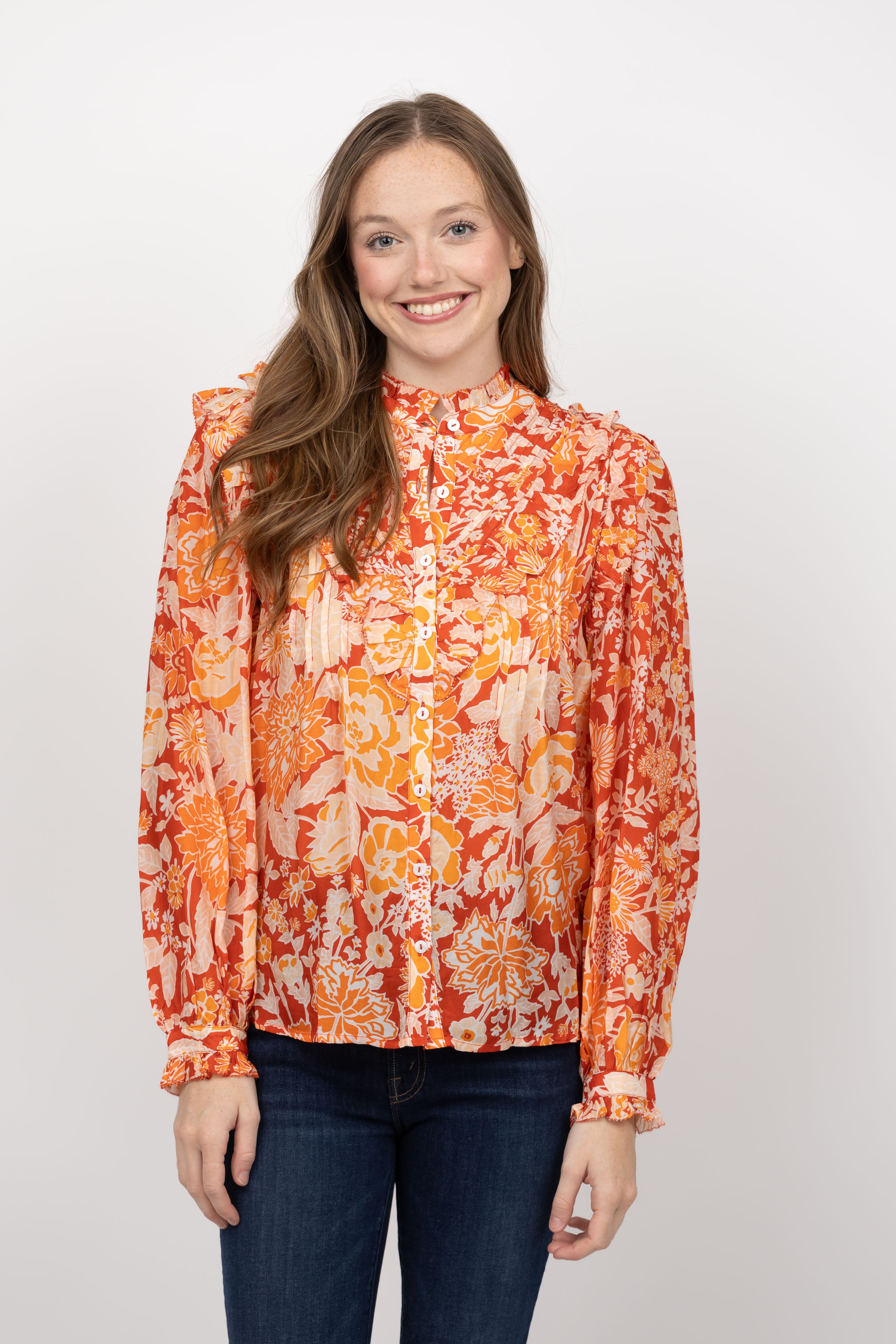 Elevate your summer wardrobe with the charming Arlo Top, in the vibrant "Light My Fire" print. Made from a lightweight blend of cotton and viscose, this top is both comfortable and breathable. The ruffled neckline and cuffs add a touch of whimsy, making it perfect for any occasion. Trust us, you'll love the easy, breezy fit!