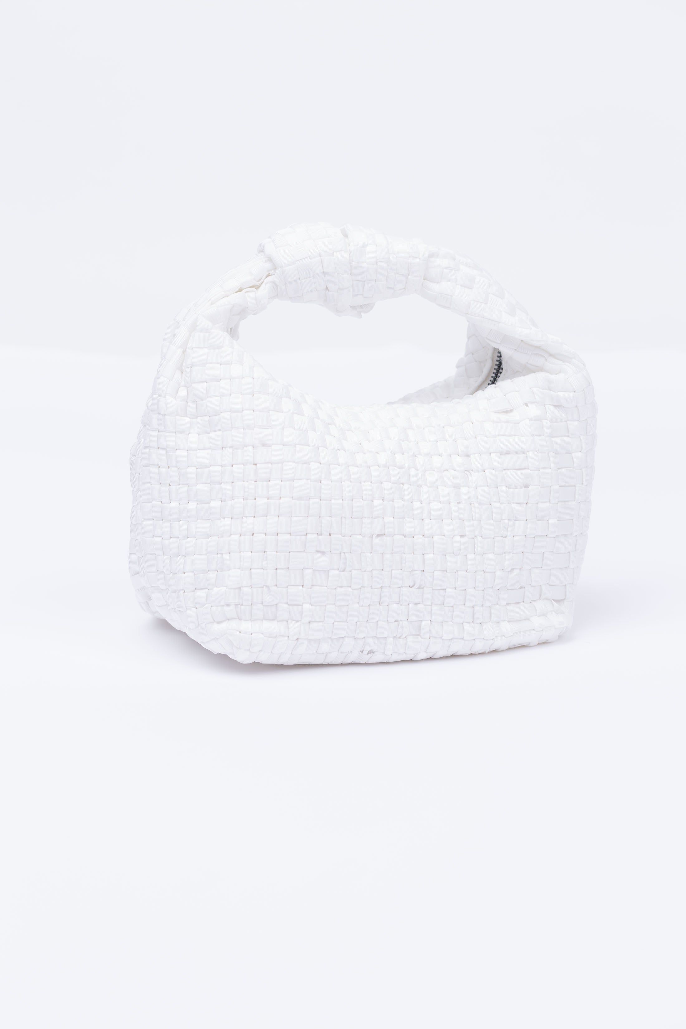 Small bag in woven ribbon fabric, handmade on ancient looms. With a simple design, available in different solid colours, it is perfect for the summer season. Equipped with a zip closure, a sash handle with a knot, it is a compact model with a fresh and lively style.
