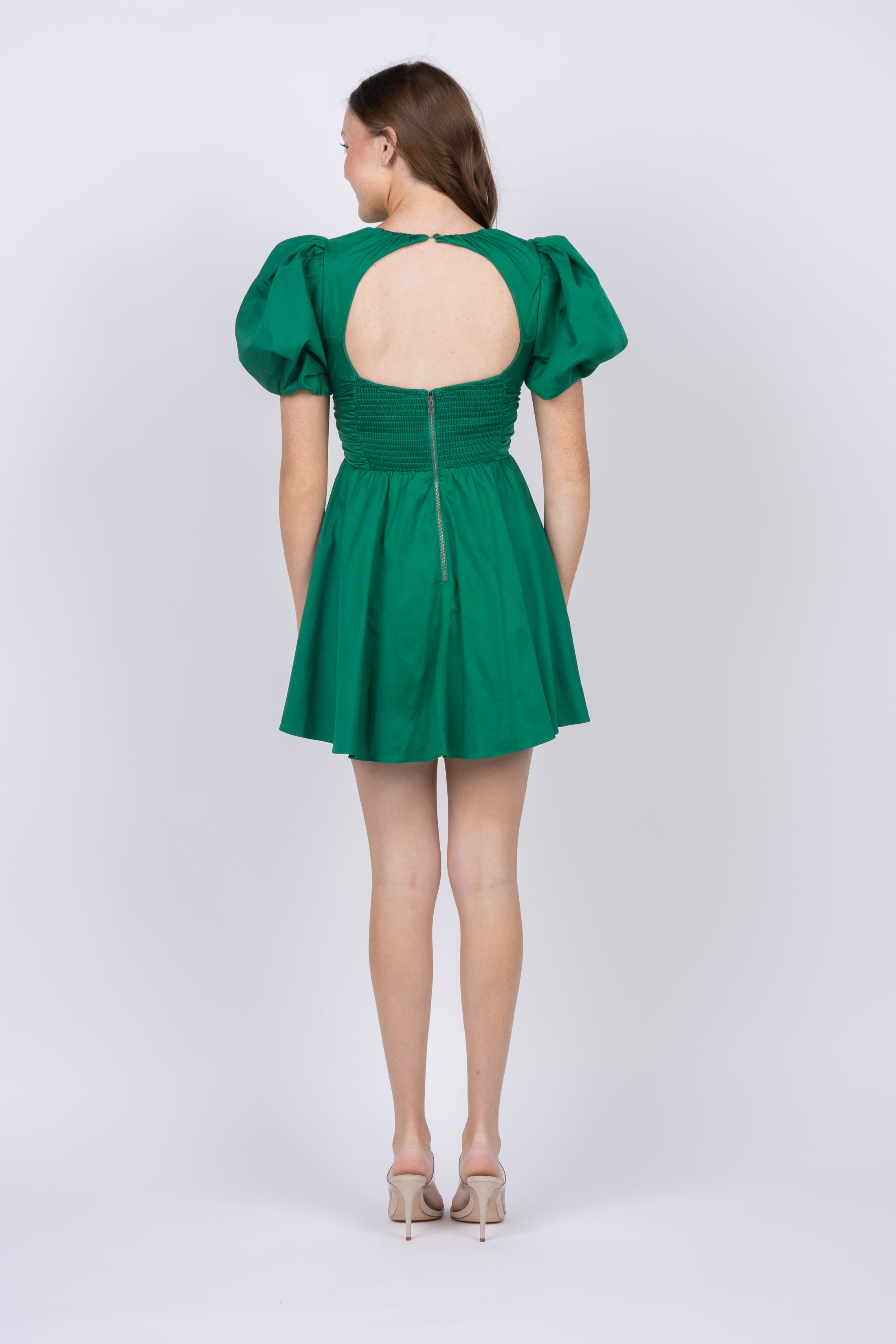 Alice+Olivia Kylan Puff Sleeve Mini Dress in Emerald