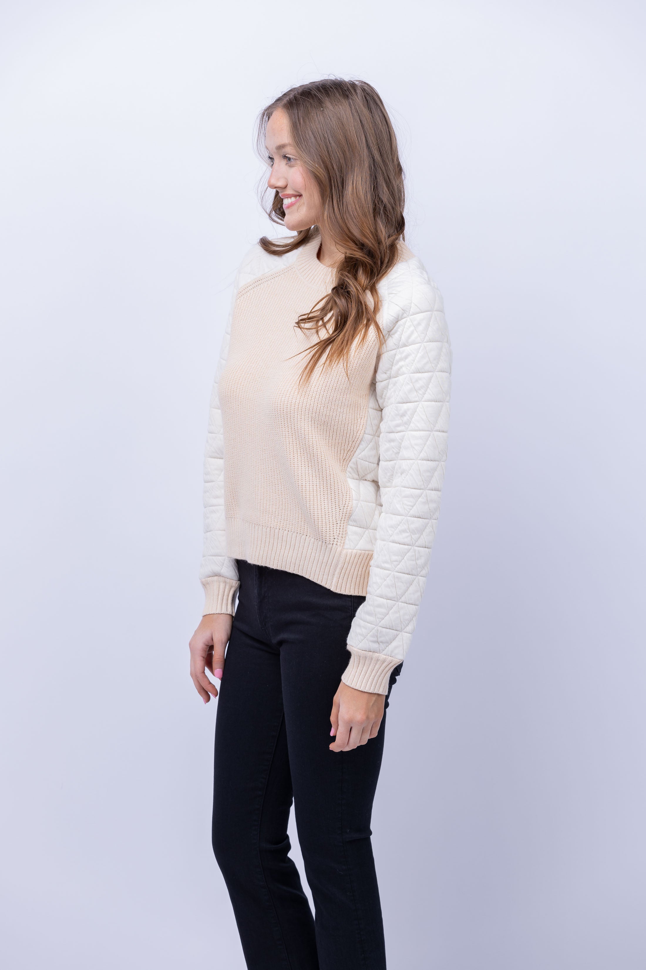 Reach for our Central Park West Crewneck Sweater and feel the timeless comfort of its cozy ivory and white fabric. From the office, to the park, to your favorite cafe, this mixed media classic will be your new closet staple. Enjoy the cozy, timeless look of this crew-neck sweater!