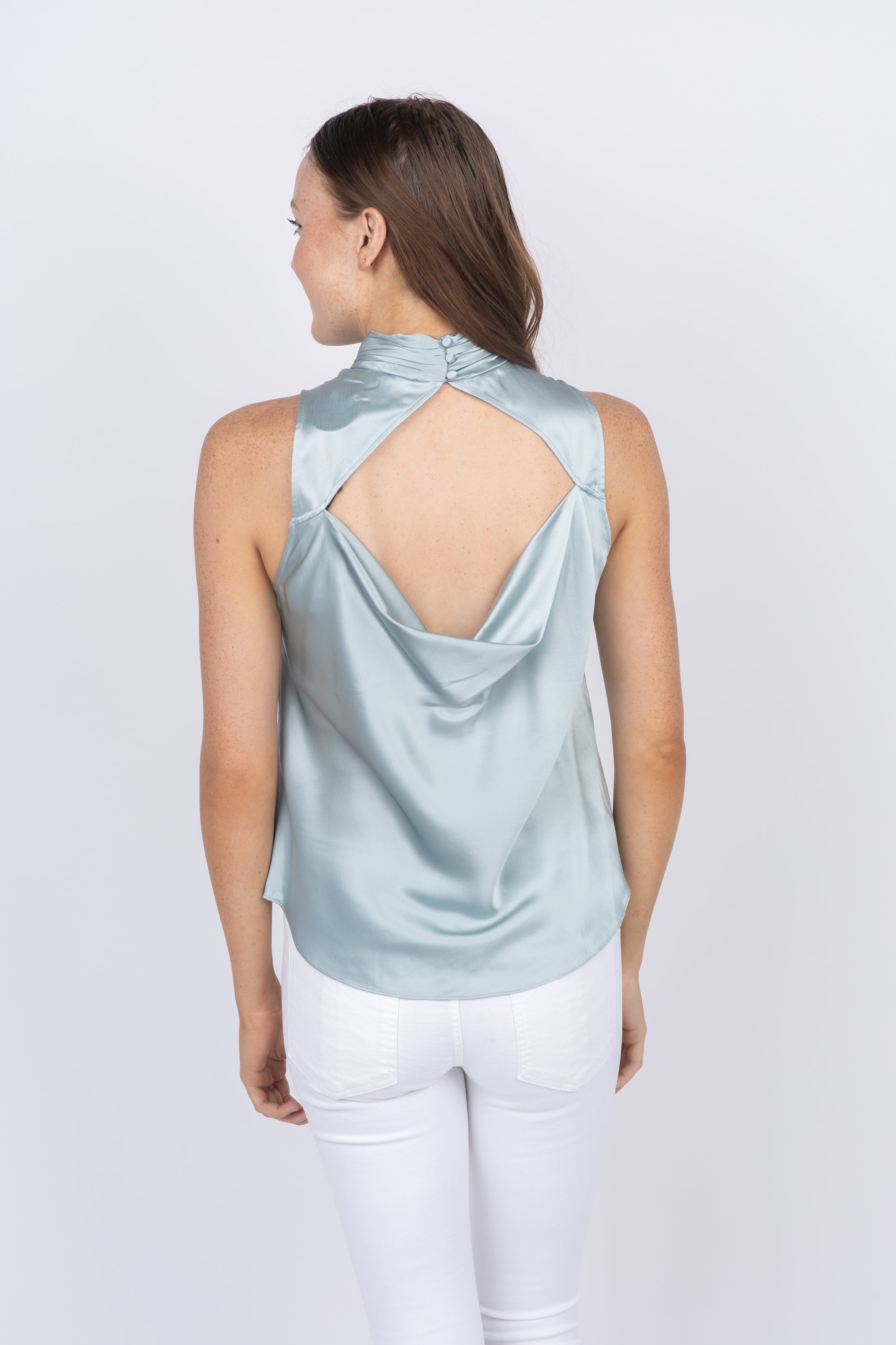 Flatter your figure in this elegant Cinq a Sept Jaylee Top. Detailed with an open-back and cutaway shoulders, this blouse offers a relaxed fit for the perfect balance between comfort and style. The halter neckline and button closure behind the neck complete the look. Crafted in luxe viscose, it's sure to be your new favorite piece. Dry clean only.