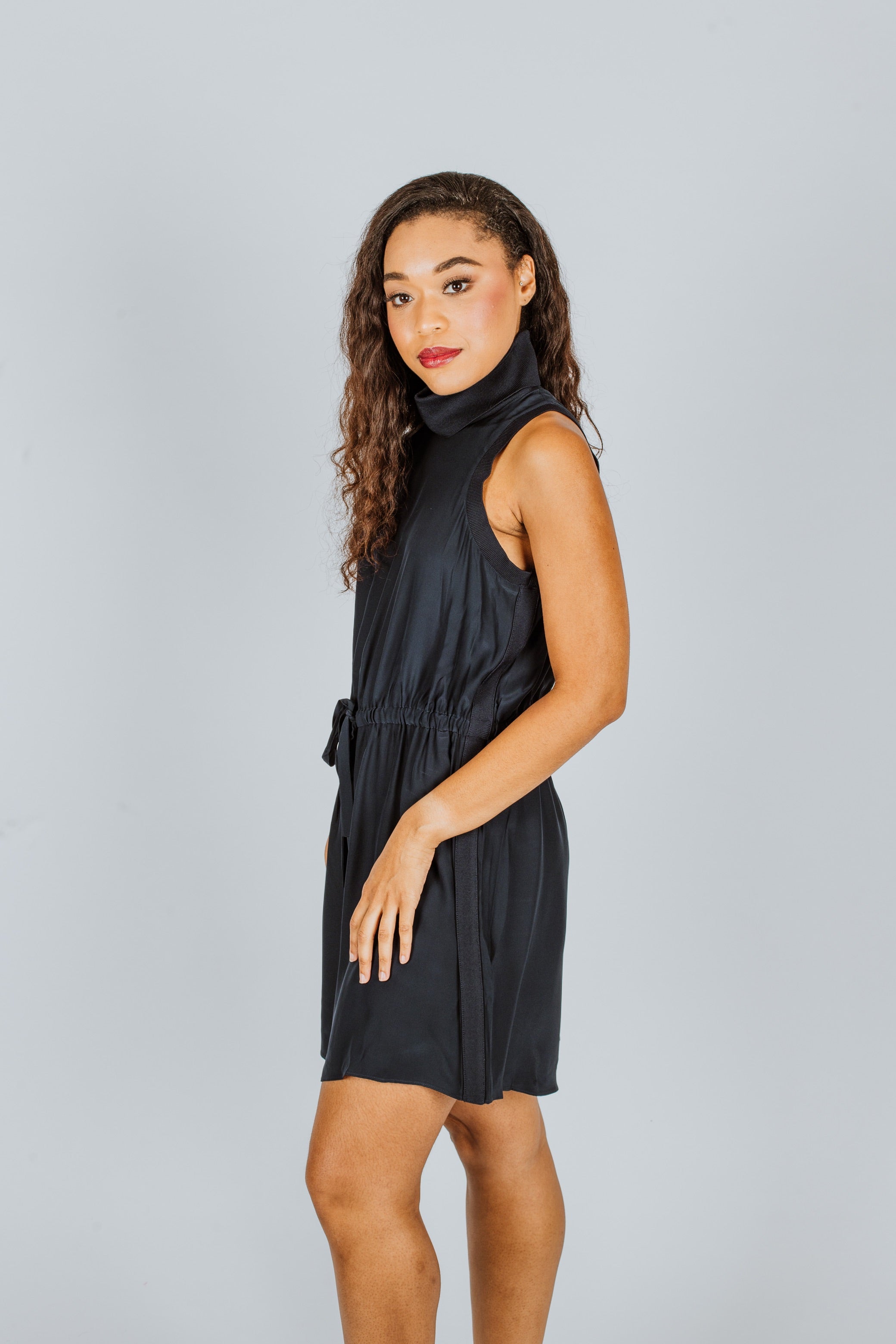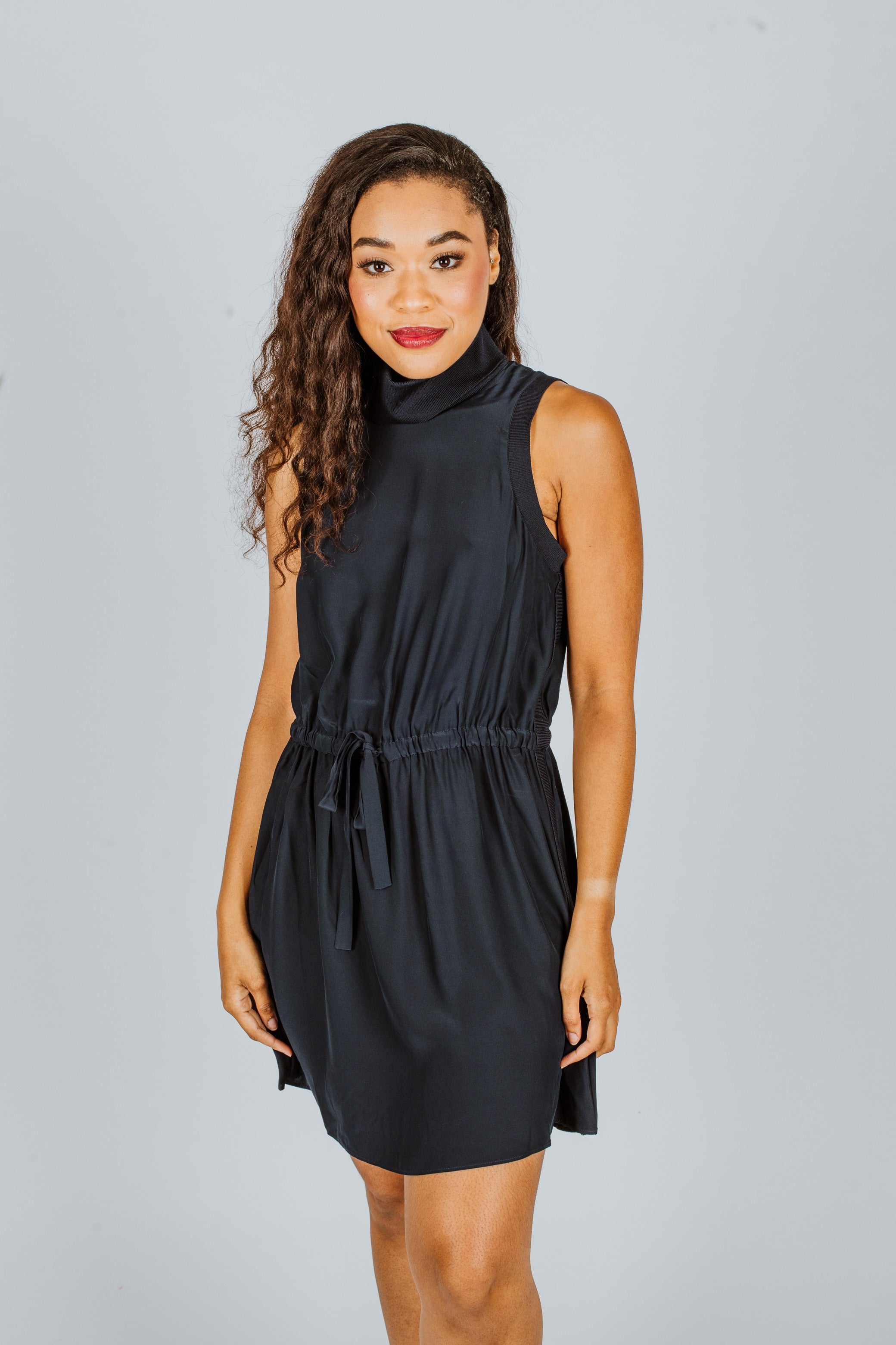 Cinq à Sept Lonny Silk Turtleneck Dress Navy